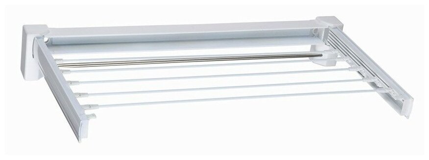 Навесная раздвижная сушилка д/белья. Материал: сталь с порошковым полимерным покрытием, пластик. Цвет пластиковых элементов: белый. Суммарная длина линий подвеса 4,2 м. Максимальная нагрузка 3,8 кг. Габариты в разобранном виде: 70x37x10,5 см.