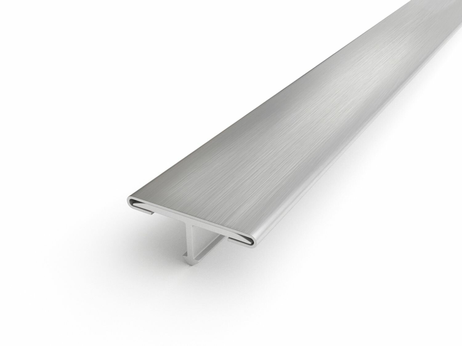 Профиль Т-образный из нержавеющей стали. Обладает высокой стойкостью к износу. Используется для соединения одноуровневых стыков. Закрывает щели, переходы между двумя различными материалами. Используется, как элемент зонирования.