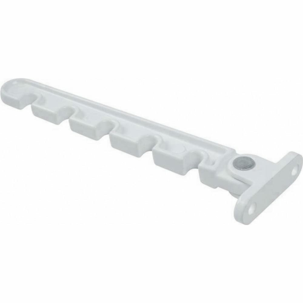 Белый оконный ограничитель состоит из планки со специальными углублениями (зубцами) и соединительного кронштейна. Конструкция ограничителя позволяет выбрать оптимальный для проветривания помещения зазор и жестко зафиксировать створку в этом положении.