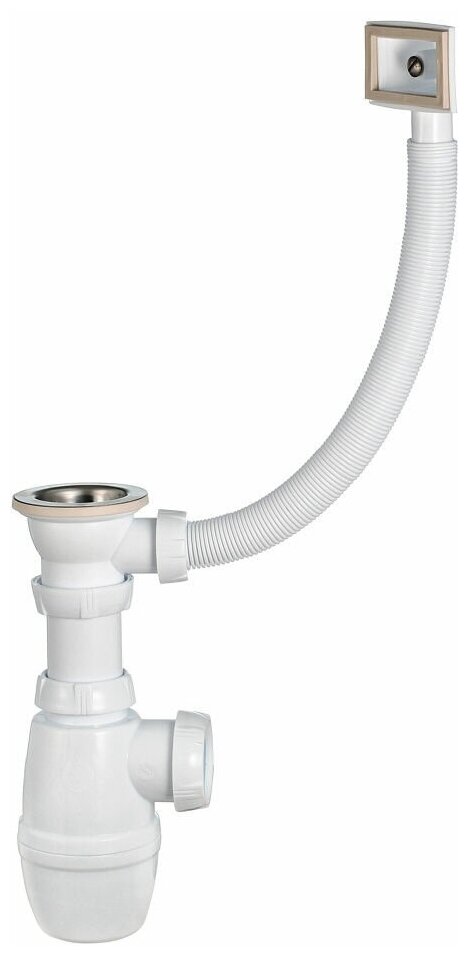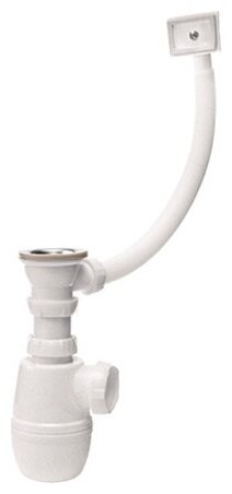 Сифон для мойки WIRQUIN Гранд 1 1/2"х40мм с переливом белый. Сифон для кухонной мойки с пластиковым выпуском, прямоугольным переливом и трубой перелива длиной 300 мм. Экономичный вариант.