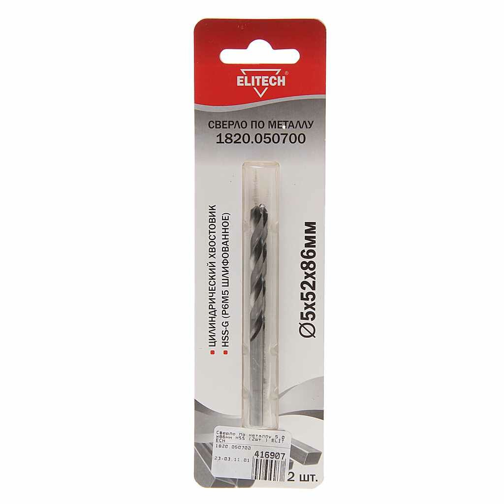 Сверло по металлу ELITECH 5.0х52х86 мм 2 шт