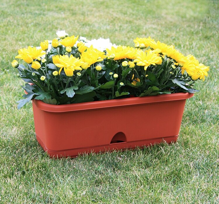 Приобрела балконный ящик для цветов на балконе. Хороший терракотовый цвет и большой объем - 16л., подойдет для различных цветов, даже высоких. В комплекте имеется удобный поддон. Сбоку ящика имеется углубление, чтобы наливать воду именно в поддон. Вниз поддона желательно насыпать дренаж. У ящика высокие удобные борта - 18,5см. Покупкой довольна, заказала еще один такой же. Рекомендую.