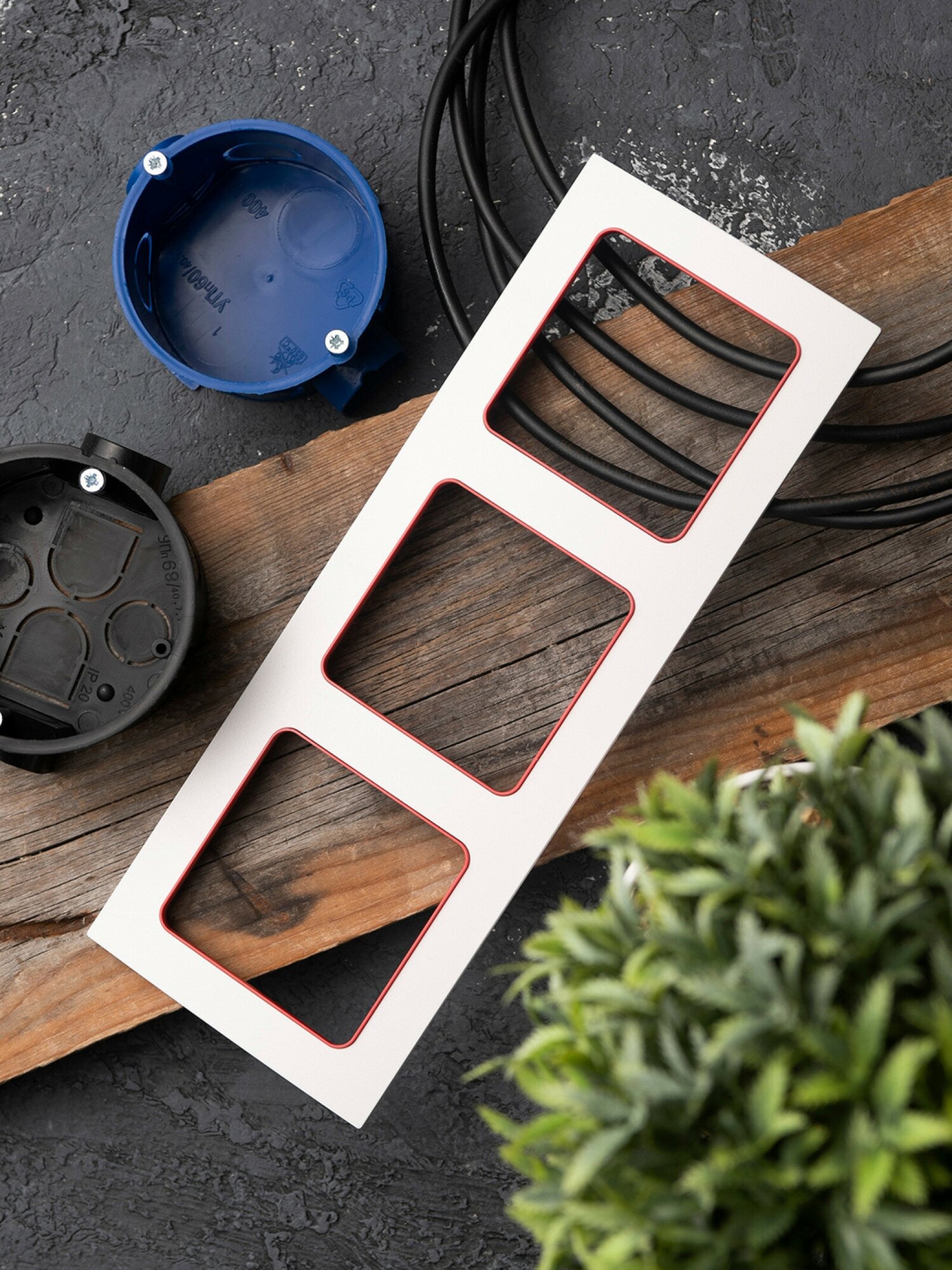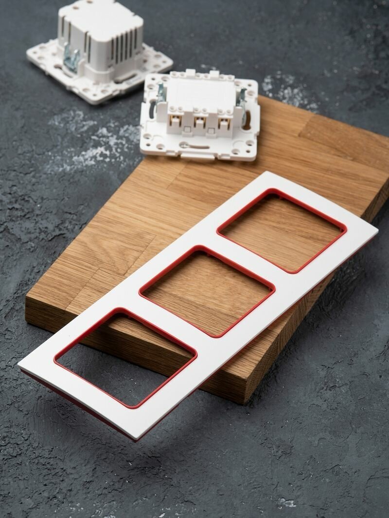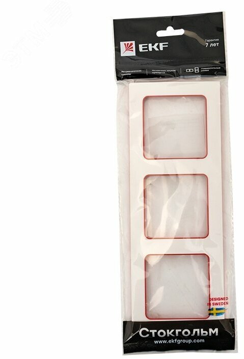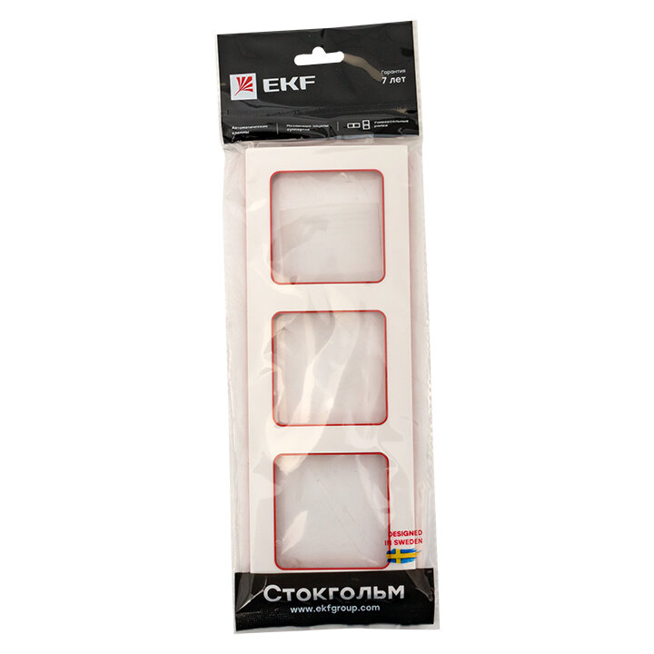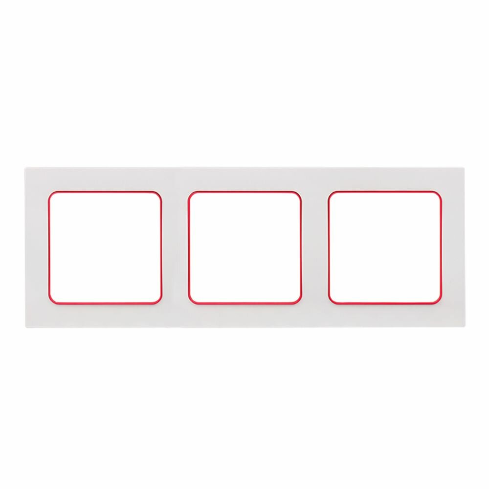 Рамка EKF Стокгольм 3-местная белая с линией цвета красный