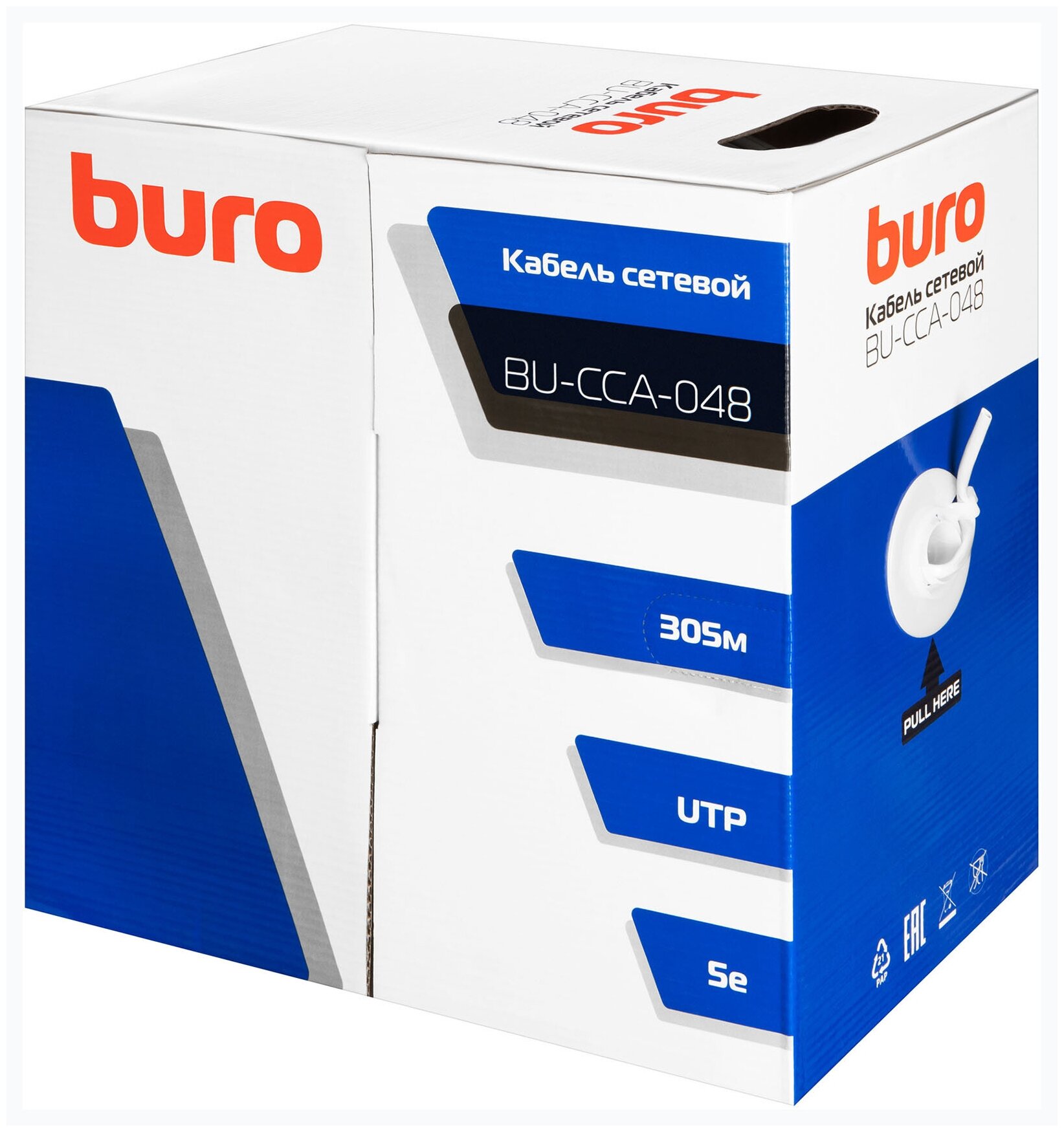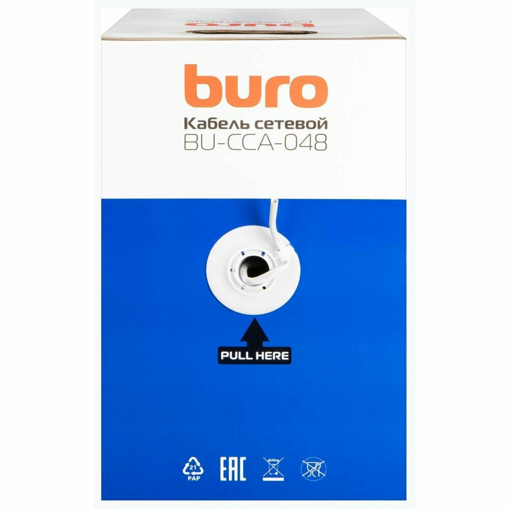 Buro BU-CCA-048 — сетевой одножильный (solid) кабель категории cat5E с экранированием UTP. Предназначен для организации компьютерных сетей внутри помещения.