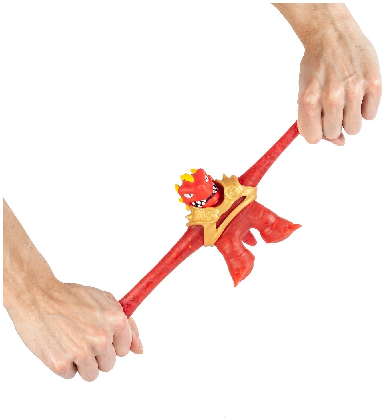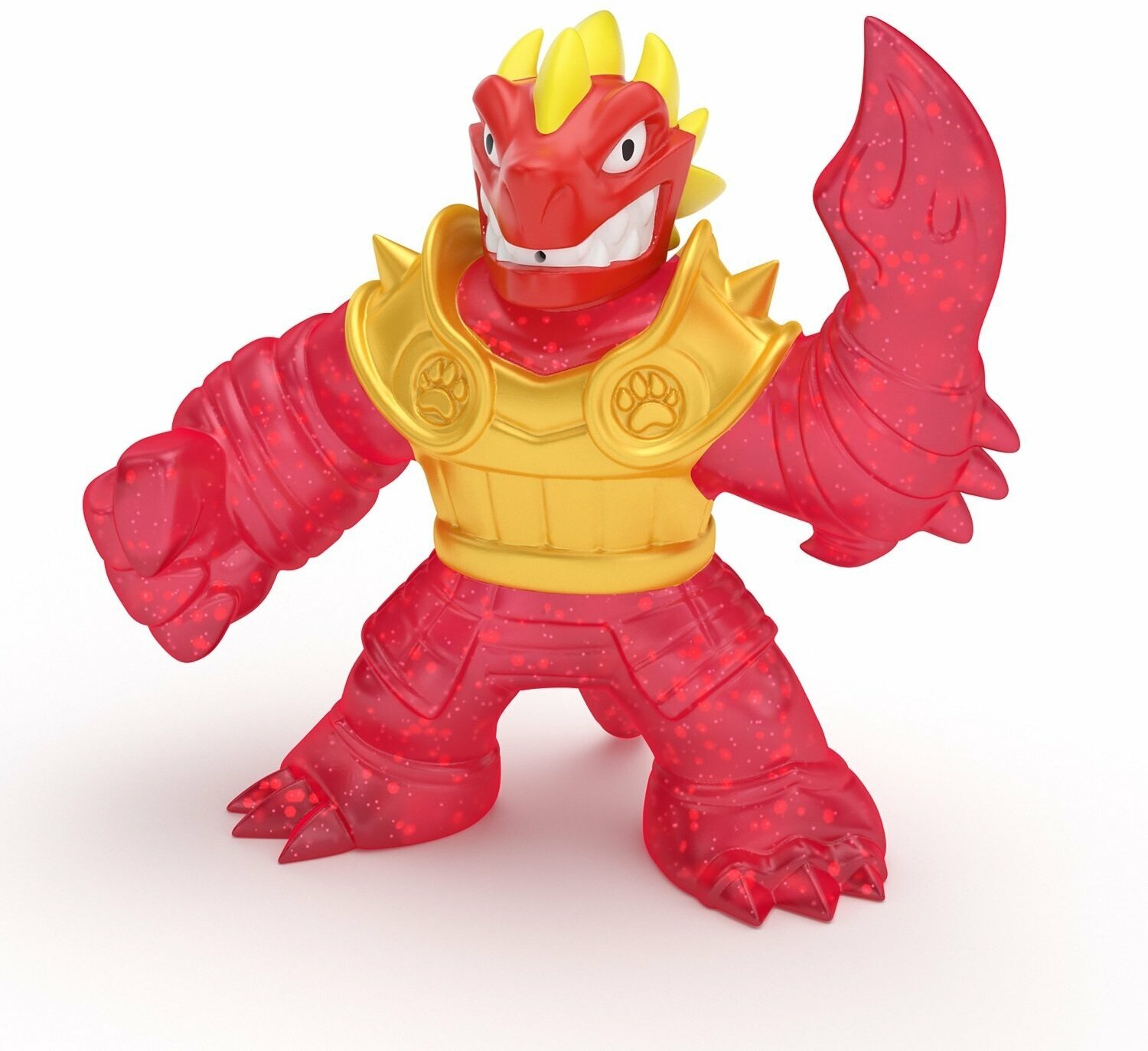 Супертянущаяся фигурка Блейзагота красно-желтого цвета. Персонаж очень мягкий и супертягучий, легко принимает первоначальный вид. Наполнен слаймом с блестками, имеется съемная одежда из эластичного материала. Голову фигурки можно наполнить водой, опустив его вниз головой в емкость с водой, а потом брызгаться. Размер фигурки 13 см.