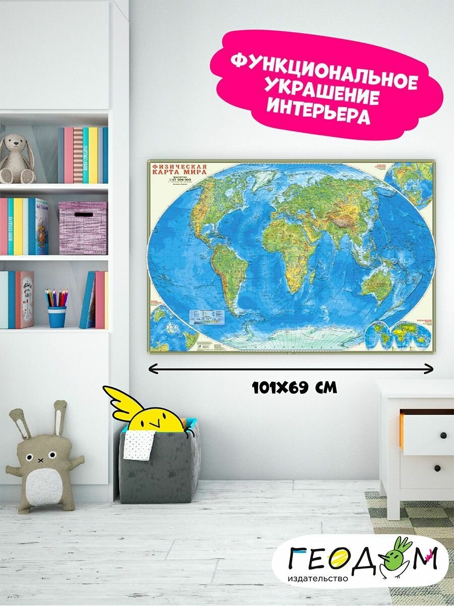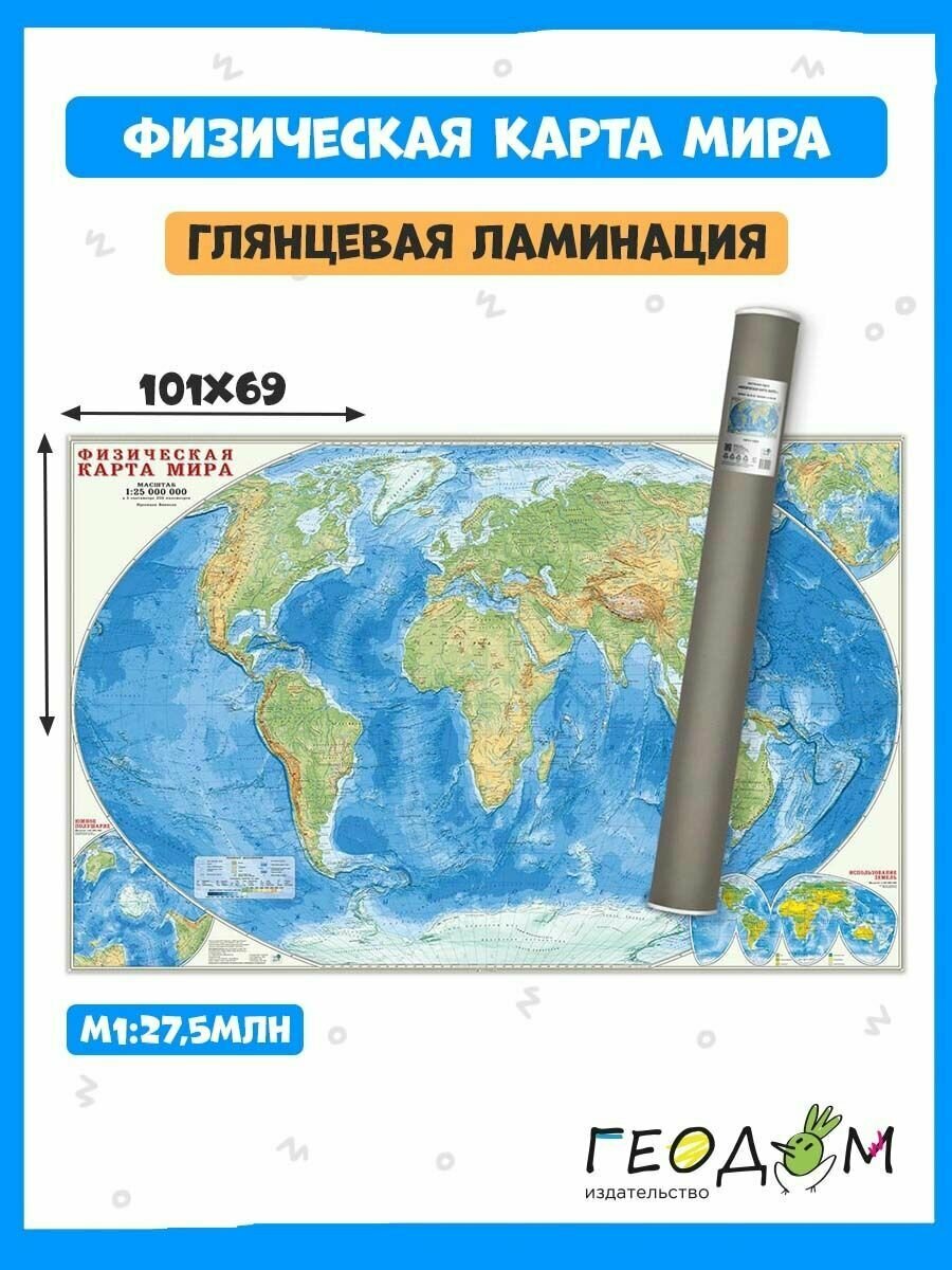 Настенная карта "Физическая карта мира" (в тубусе) (Геодом); Геодом, 2020