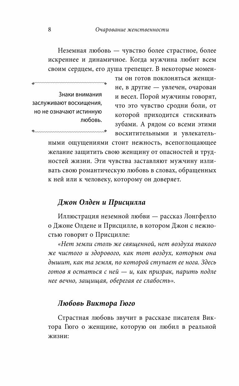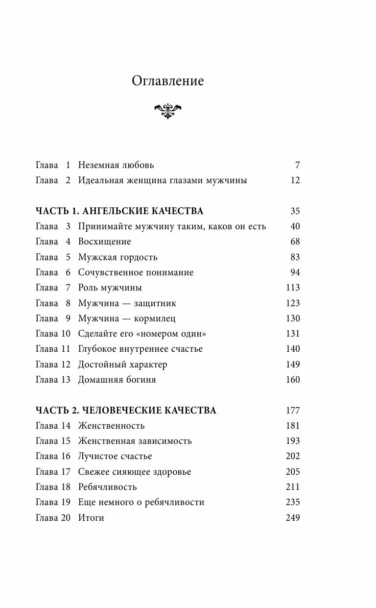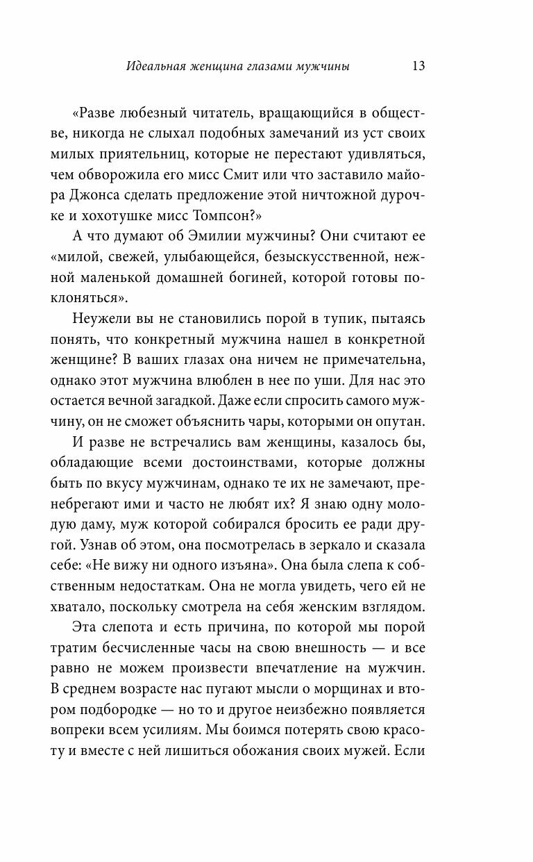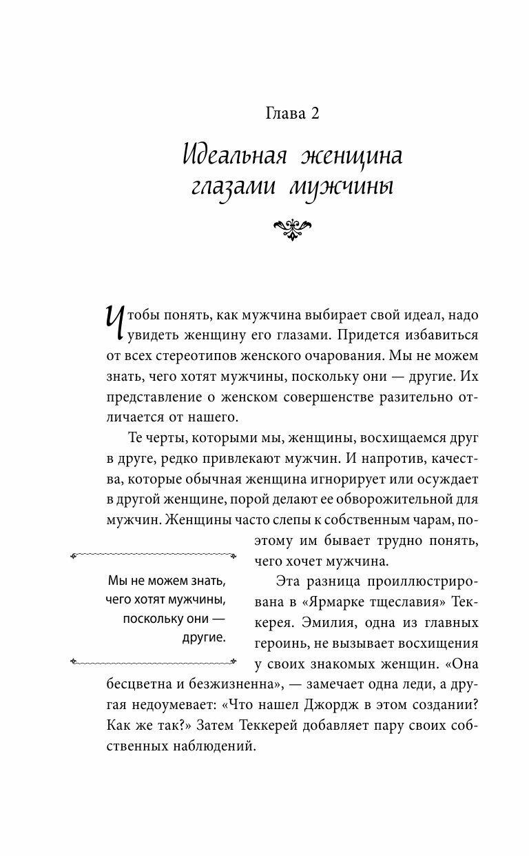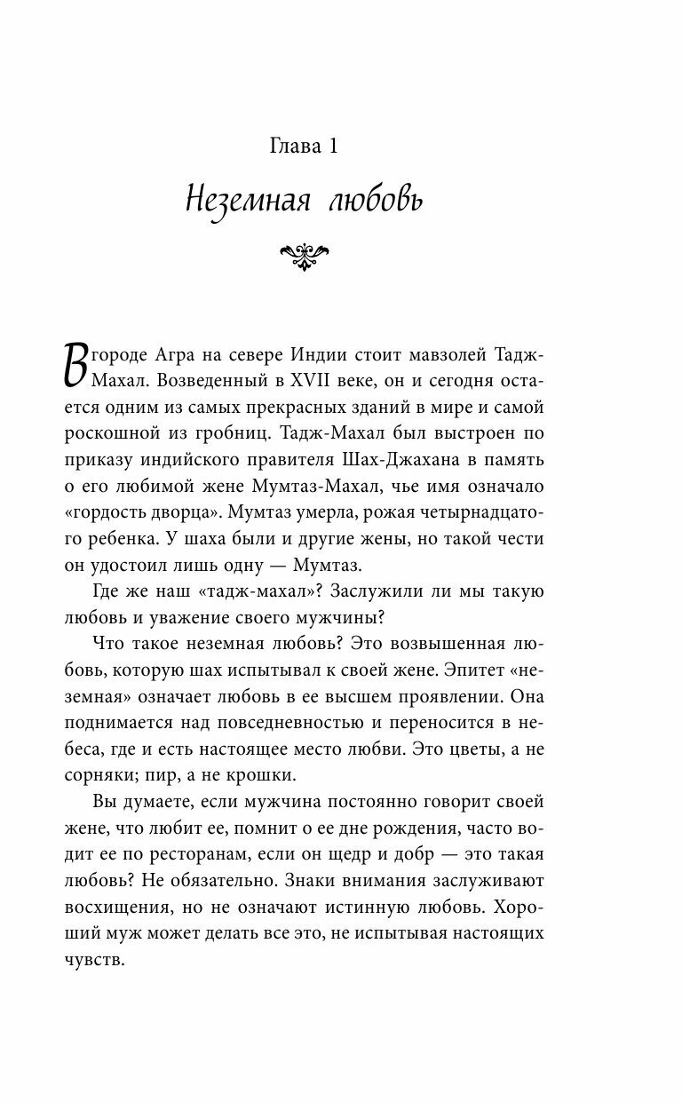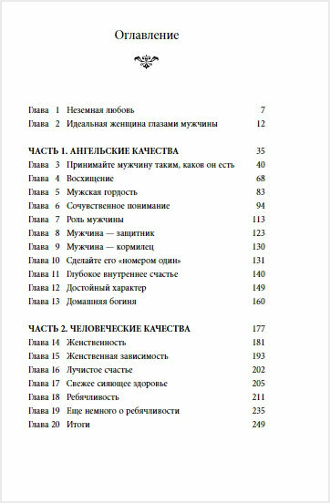 Смешанные эмоции от прочтения этой книги. Порой кажется, что написаны настолько очевидные вещи, что не было смысла их расписывать на несколько страниц. Порой попадаются умные мысли. Написано легко, но всё же наверно это практически тоже, что и пишут в других книгах об идеальной женщине. Смысл в том, что женщина должна понимать, поддерживать, на многое закрывать глаза, уметь реагировать на невнимание со стороны мужчины. Вообщем, очень много всего должна, чтоб заслужить любовь.