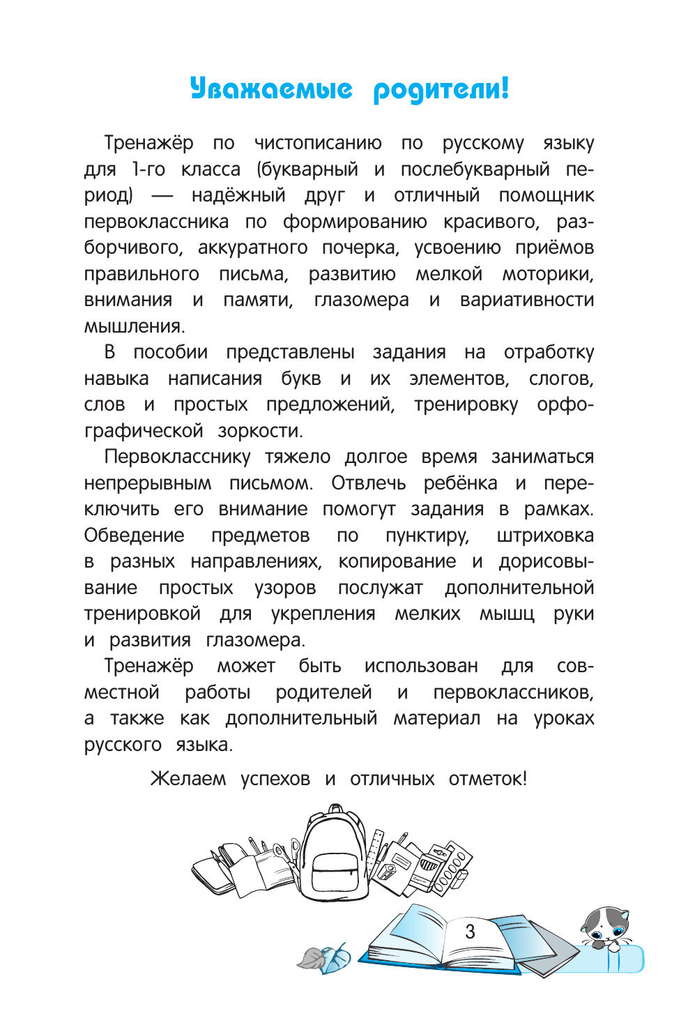 Тренажер по чистописанию. Букварный и послебукварный периоды. 1 класс (Пожилова Елена Олеговна); ООО "Издательство "Эксмо", 2021