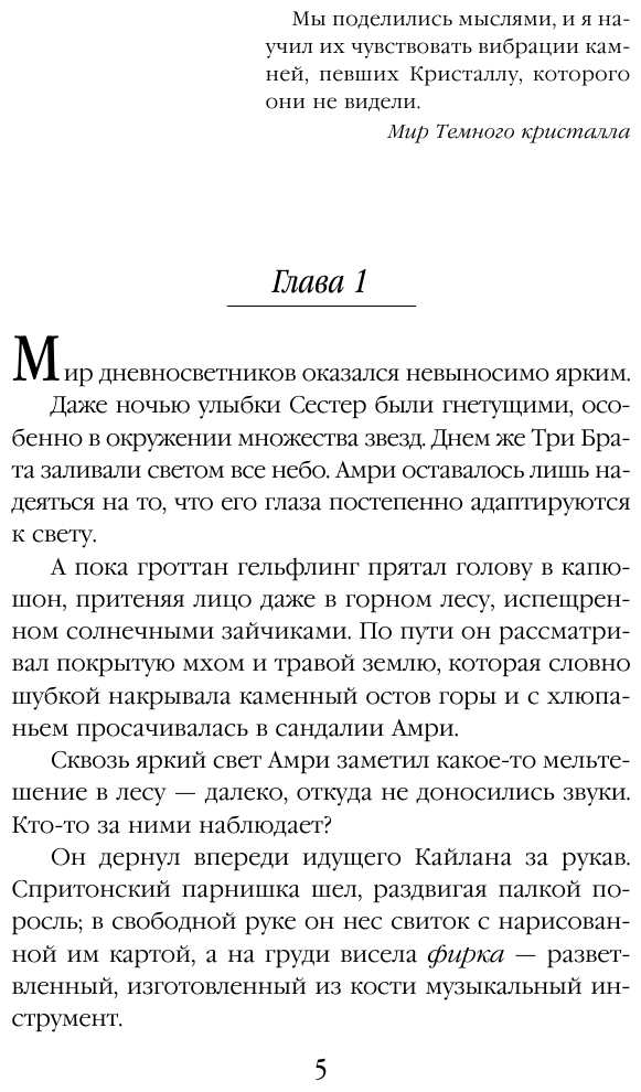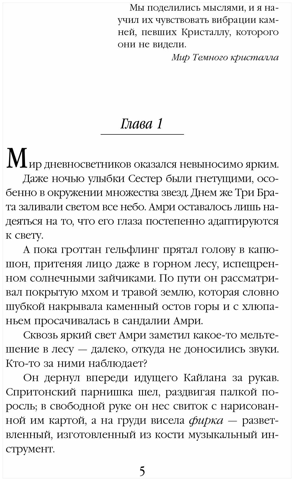 Ну вот и 3 книга цикла. Сюжет плавно стартует с конца 2 книги. Данный том повествует о приключениях гельфлингов от лица гротана Амри. События всё также развиваются и дополняют картину мира более глубоким погружением в другие кланы гельфлингов и их особенности. ЗА время повествования Амри не раз придётся делать тяжкие выборы и решения - и если в начале своего пути он был неуверенным и был в нерешительности, то ближе к финалу книги становиться много уверенней себя прежнего. И книга традиционно оканчивается ничем - ибо мы ждём 4-ую часть)