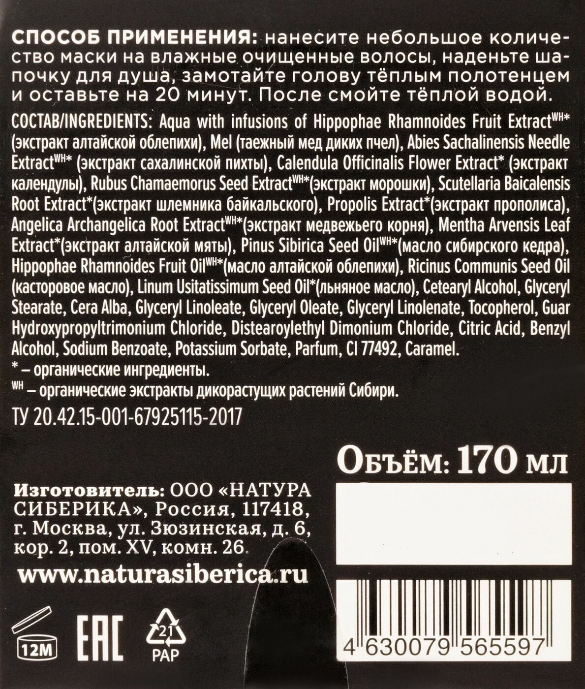 | Состав | Aqua with infusions of Hippophae Rhamnoides Fruit ExtractWH* (экстракт алтайской облепихи), Mel (таежный мед диких пчел), Abies Sachalinensis Needle ExtractWH* (экстракт сахалинской пихты), Calendula Officinalis Flower Extract* (экстракт календулы), Rubus Chamaemorus Seed ExtractWH* (экстракт морошки), Scutellaria Baicalensis Root Extract* (экстракт шлемника байкальского), Propolis Extract* (экстракт прополиса), Angelica Archangelica Root ExtractWH* (экстракт медвежьего корня), Mentha Arvensis Leaf Extract* (экстракт алтайской мяты), Pinus Sibirica Seed OilWH* (масло сибирского кедра), Hippophae Rhamnoides Fruit OilWH* (масло алтайской облепихи), Ricinus Communis Seed Oil (касторовое масло), Linum Usitatissimum Seed Oil* (льняное масло), Cetearyl Alcohol, Glyceryl Stearate, Cera Alba, Glyceryl Linoleate, Glyceryl Oleate, Glyceryl Linolenate, Tocopherol, Guar Hydroxypropyltrimonium Chloride, Distearoylethyl Dimonium Chloride, Citric Acid, Benzyl Alcohol, Sodium Benzoate, Potassium Sorbate, Parfum, CI 77492, Caramel |
