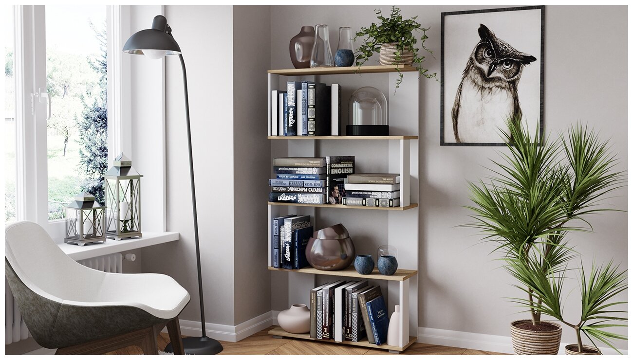 Стеллаж ТриЯ Diamond Тип 4 ШxГxВ: 75х25х141.6 см дуб сонома/белый Hoff