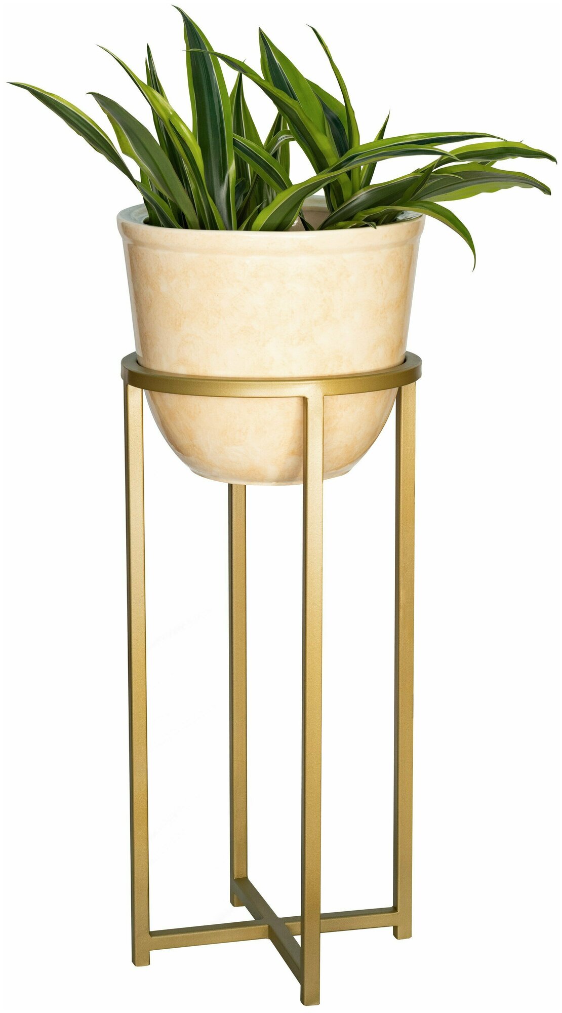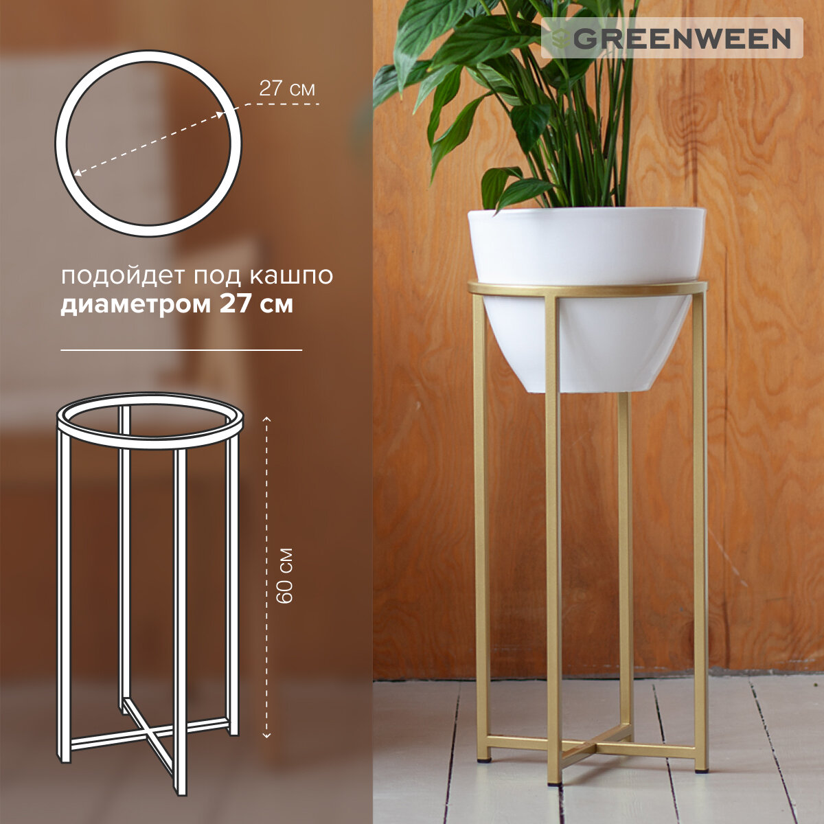 Неразборная конструкция на четырёх ножках. Пластиковые заглушки на ножках. Кольцо для установки кашпо, внутренний диаметр кольца 27 см. Подходят под горшки и кашпо, которые по размеру войдут в кольцо. Возможность напольной установки.