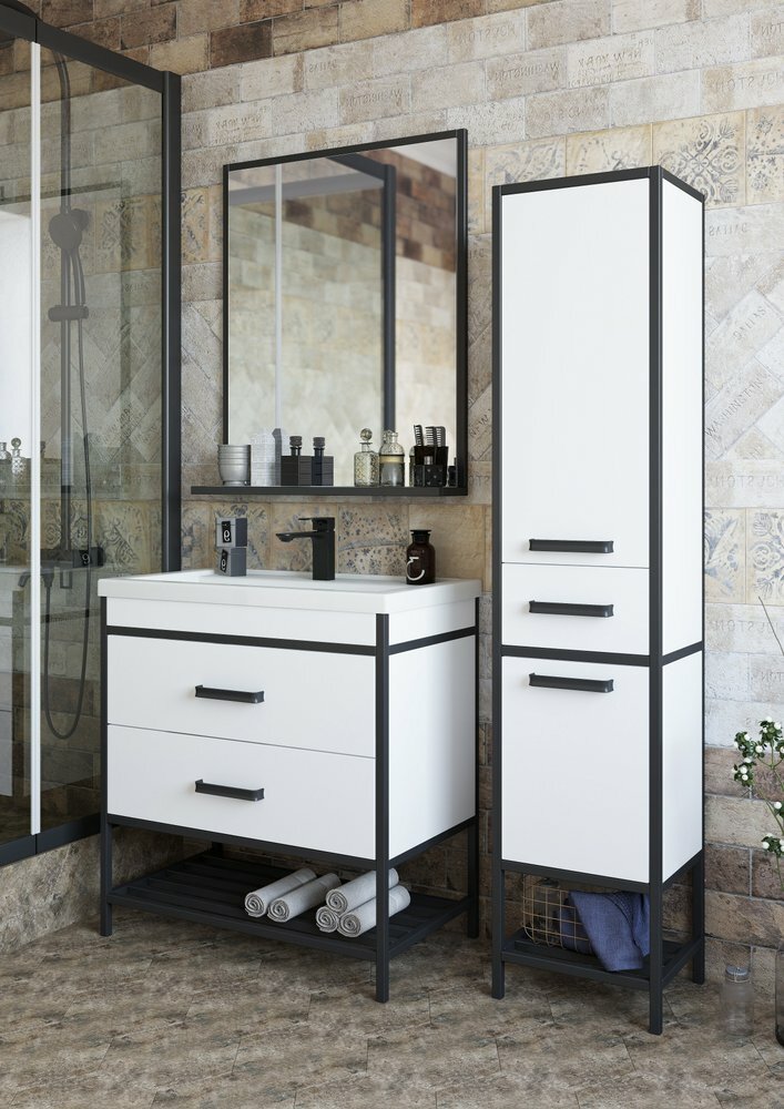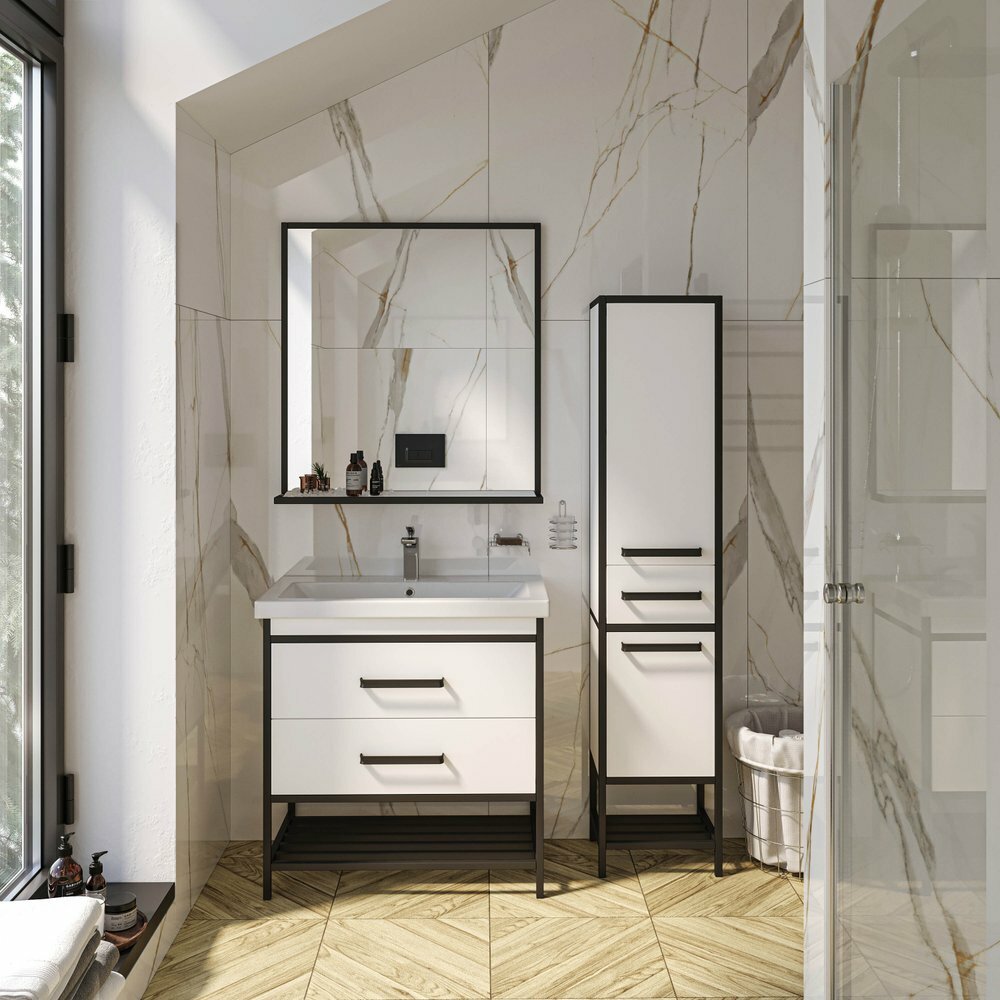 Мебель для ванной Sanflor Норд не только замечательное украшение для ванной комнаты, но и отличное функциональное решение любого санузла. Напольный способ установки производится непосредственно на пол, при этом конструкция максимально устойчива при серьезных физических нагрузках. В производстве используют только качественные влагостойкие материалы (нержавеющая сталь / ДСП), в составе которых полностью отсутствуют опасные вещества. Серия Норд отличается превосходным дизайном с соблюдением всех серьезных элементов стиля hi-tech. Основным цветом, в котором выполнен комплект Sanflor Норд является черный / белый, безупречно впишется в любой дизайн проект. Комплект предусматривает удобную и вместительную систему хранения, состоящую из ящиков. Качественные доводчики позволяют обеспечить мягкое и тихое закрывание.