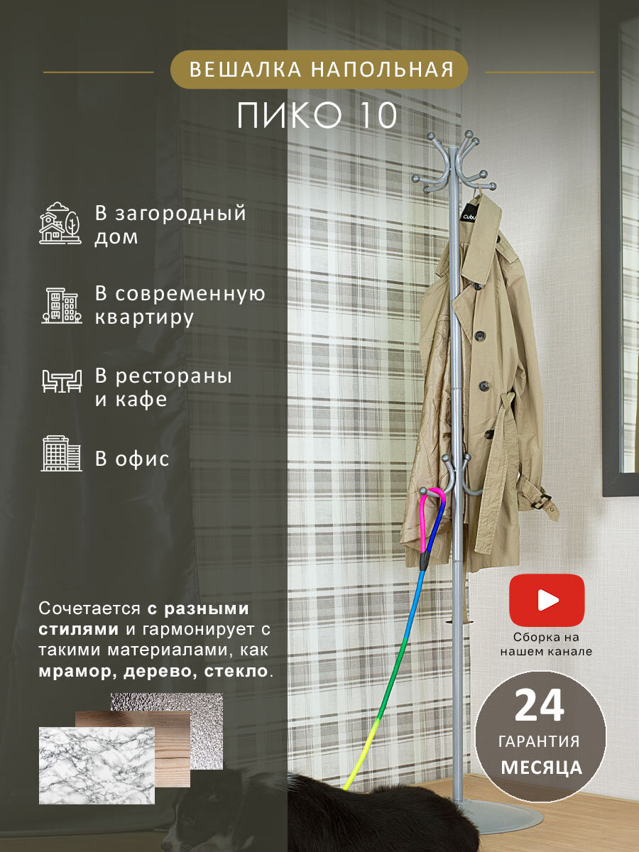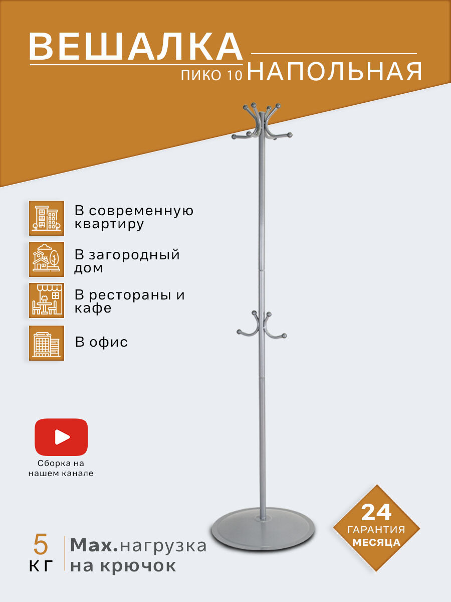 Напольная вешалка Мебелик Пико 10 металлик Hoff