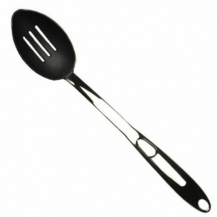 Сервировочная ложка длиной 34,5 см. Выполнена из нейлона и нержавеющей стали профессионального качества, что делает ее очень прочной, гигиеничной и простой в очистке. Эргономичный дизайн для контроля и комфорта в использовании. Петля для удобного хранения. Не использовать на плите и других прямых источниках тепла.