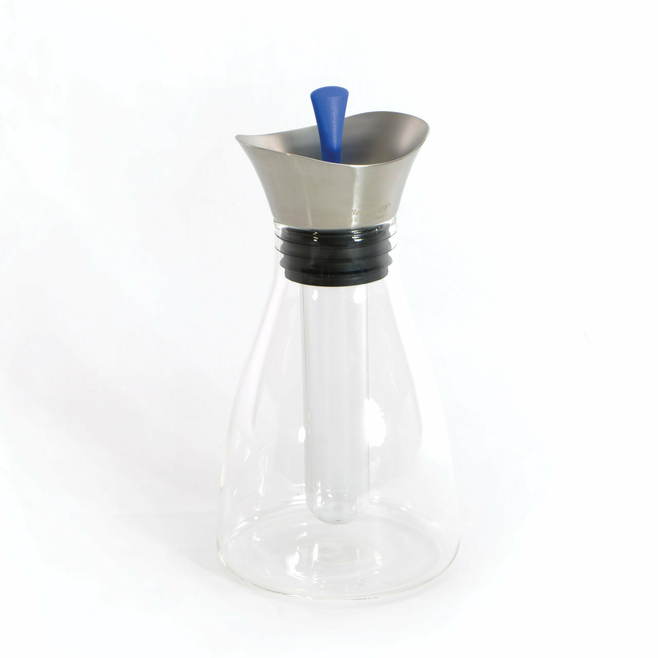 Напиток "со льдом" имеет в этом графине более насыщенный вкус: просто налейте воды в колбу, заморозьте ее, а потом вставьте в графин. Всегда охлажденные напитки со вкусом, не разбавленным растаявшими кубиками льда!Объем: 1,2л. Материал: термостойкое боросиликатное стекло, 18/10 нержавеющая сталь, АБС-пластик, силикон. Внутренняя отделка: пескоструйная обработка. Внешняя отделка: зеркальная. Не использовать на плите и других прямых источниках тепла. Подходит для посудомоечной машины.