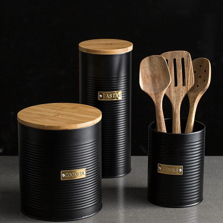 Емкость для хранения печенья Otto поможет организовать рабочее пространство на вашей кухне. Эргономичный контейнер из эмалированной стали подходит для всех видов кондитерских изделий. Бамбуковая крышка с воздухопроницаемым уплотнителем из силикона продлевает свежесть продуктов и защищает их от воздействия влаги. При создании изделия дизайнеры используют золотистый декор, который безупречно сочетается с матовым покрытием черного цвета. Благодаря этому емкость добавит элегантности классическому и современному интерьеру кухни.