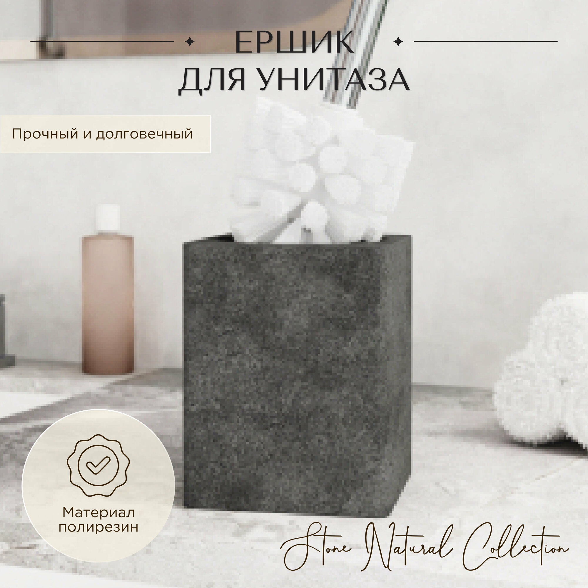 Ершик для унитаза STONE BLACK от производителя Fora изготовлен из экологичного, прочного, стойкого к влажности материала полирезин, качественного пластика и металла. Изделие выполнено в виде стильной квадратной колбы черного цвета и ершика с эргономичной хромированной ручкой, отлично вписывается в интерьер современной ванной комнаты и служит долгие годы. Основные преимущества ершика для унитаза STONE BLACK: изготовлен из прочного материала, хромированная ручка не подвергается коррозии; непористая структура полирезина устойчива к развитию бактерий; прост в уходе, легко моется, обеспечивая чистоту и гигиеничность; выполнен в современном стиле, в сочетании с элементами той же коллекции может стать частью гармоничной композиции. Дополните интерьер другими аксессуарами серии "Ston