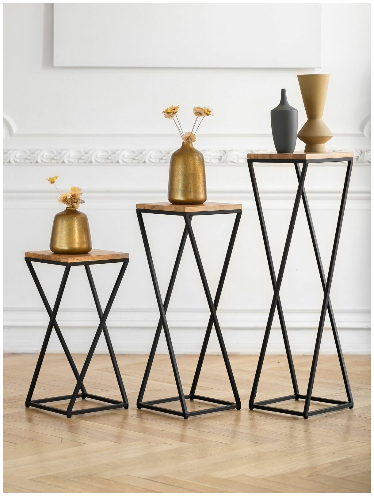 Неразборная конструкция. Столешница из бука толщиной 2 см. Размер столешницы 30х30 см. Подходит под горшки, кашпо, а также для других интерьерных решений. Для напольной установки.