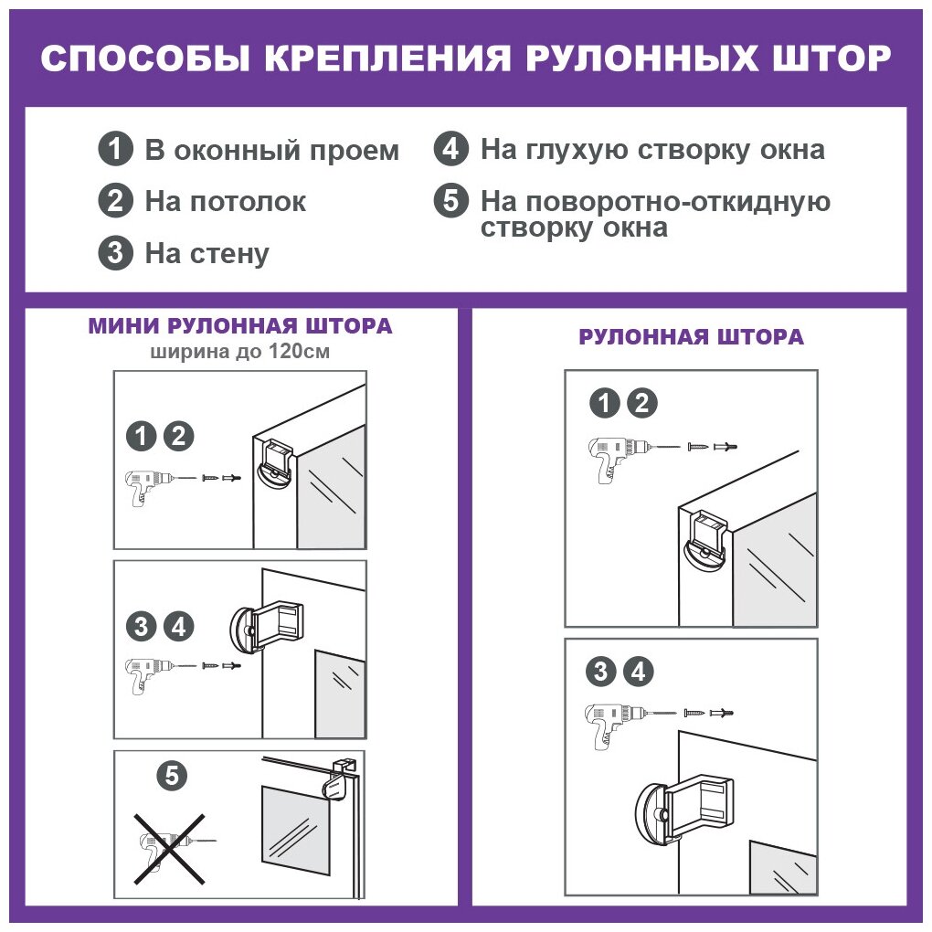 – легкий монтаж - без сверления (для штор шириной до 120 см) на откидную створку окна или на стену/потолок с помощью шурупов;