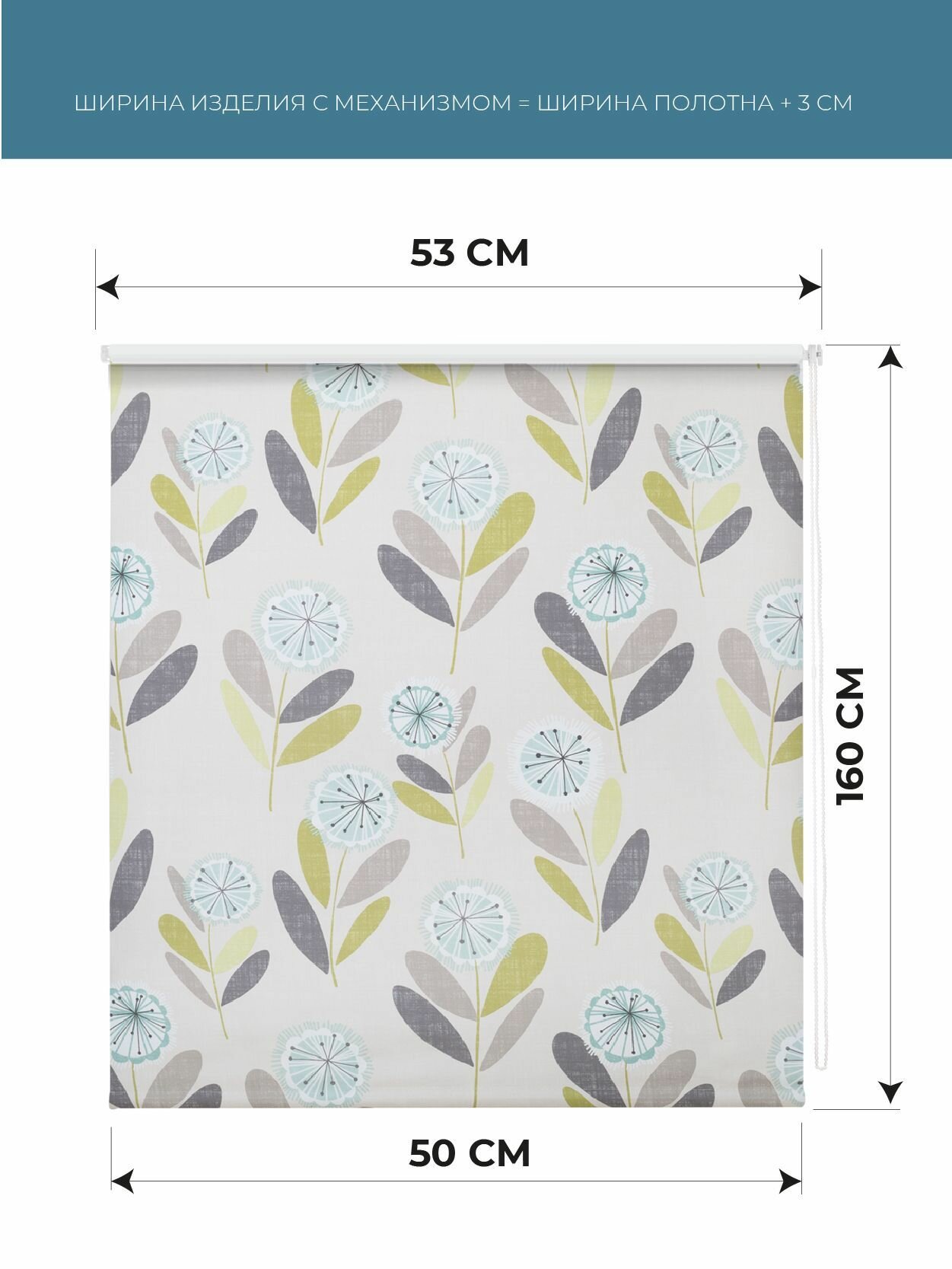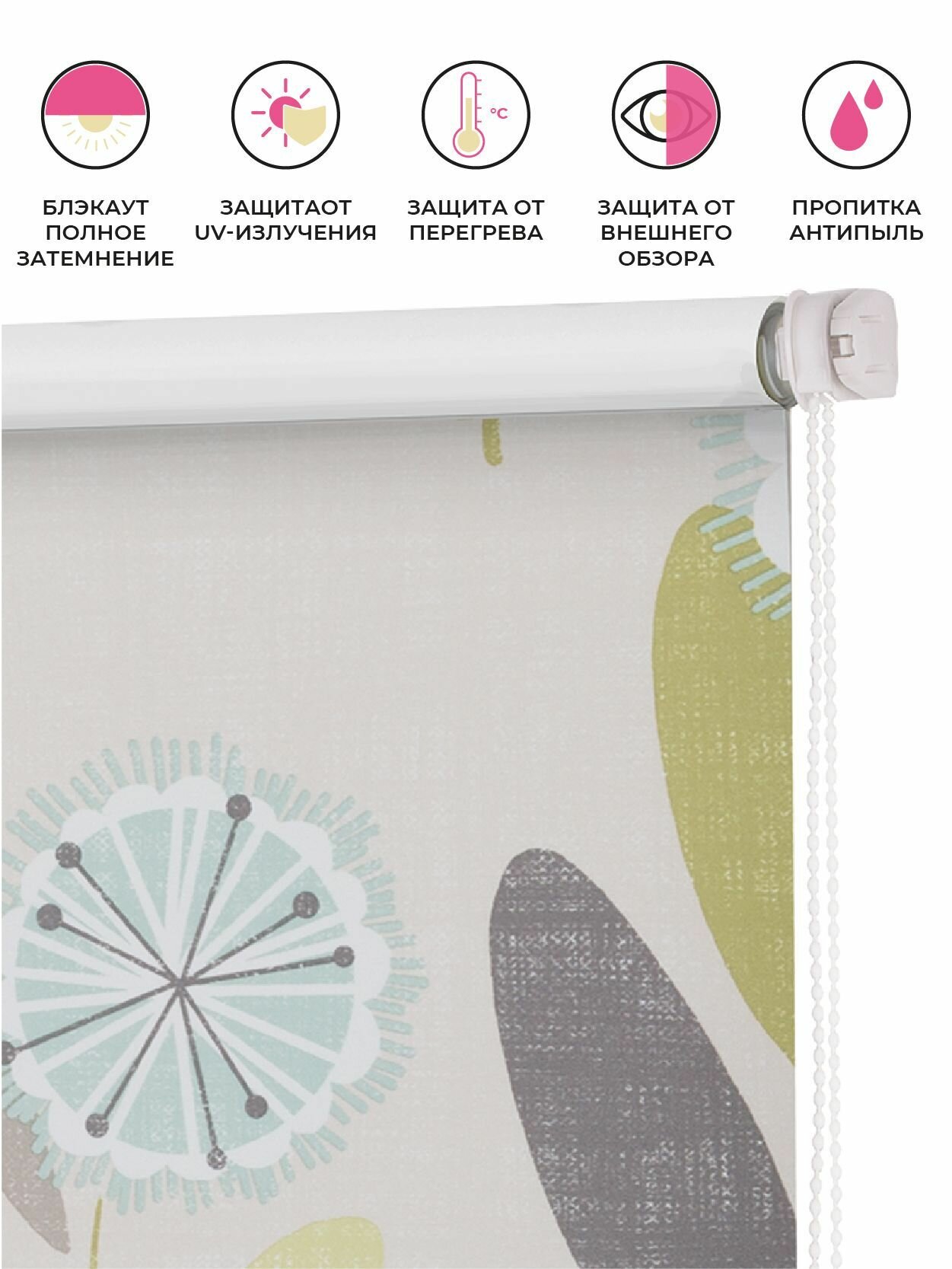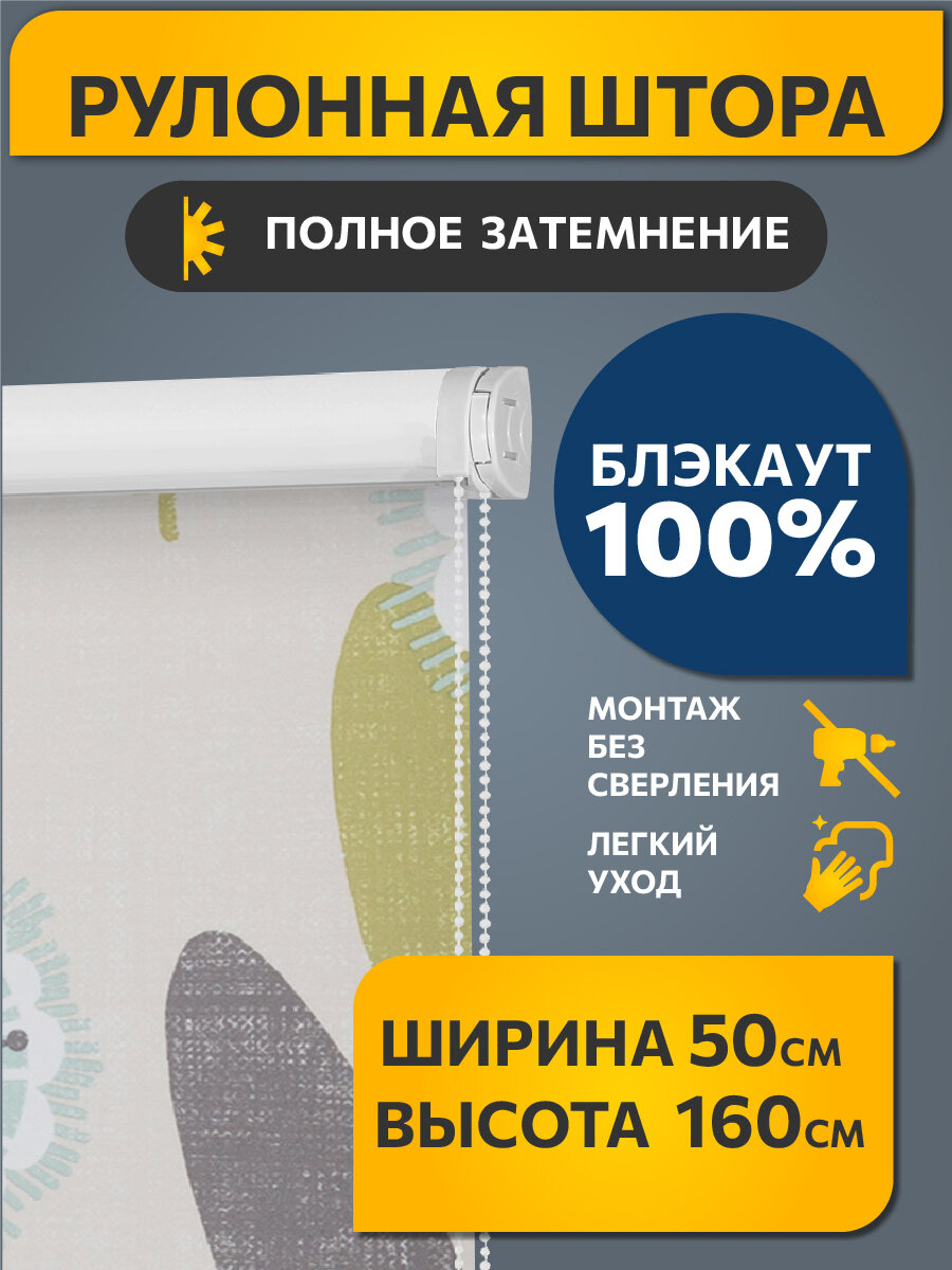 - РУЛОННАЯ ШТОРА ролло блэкаут "Одуванчик", зеленый, бежевый