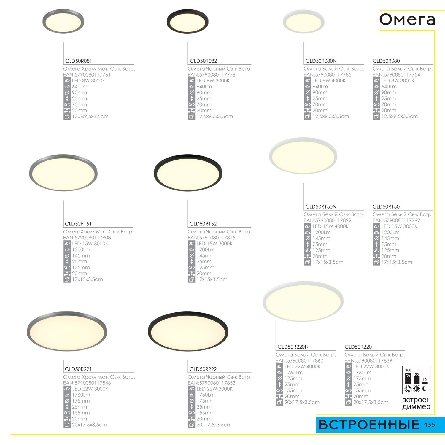 Ультратонкий встраиваемый светильник Омега предназначен для натяжных потолков и подвесных потолочных систем, подходит для точечного и декоративного освещения. Конструкцией предусмотрена функция трехступенчатого управления уровнем мощности – для переключения режимов используется настенный клавишный выключатель. Размещенный за рассеивателем из оптического полимера светодиод гарантирует энергоэффективность и хороший потенциал экономии. Металлический корпус оснащен распорным механизмом для фиксации изделия.