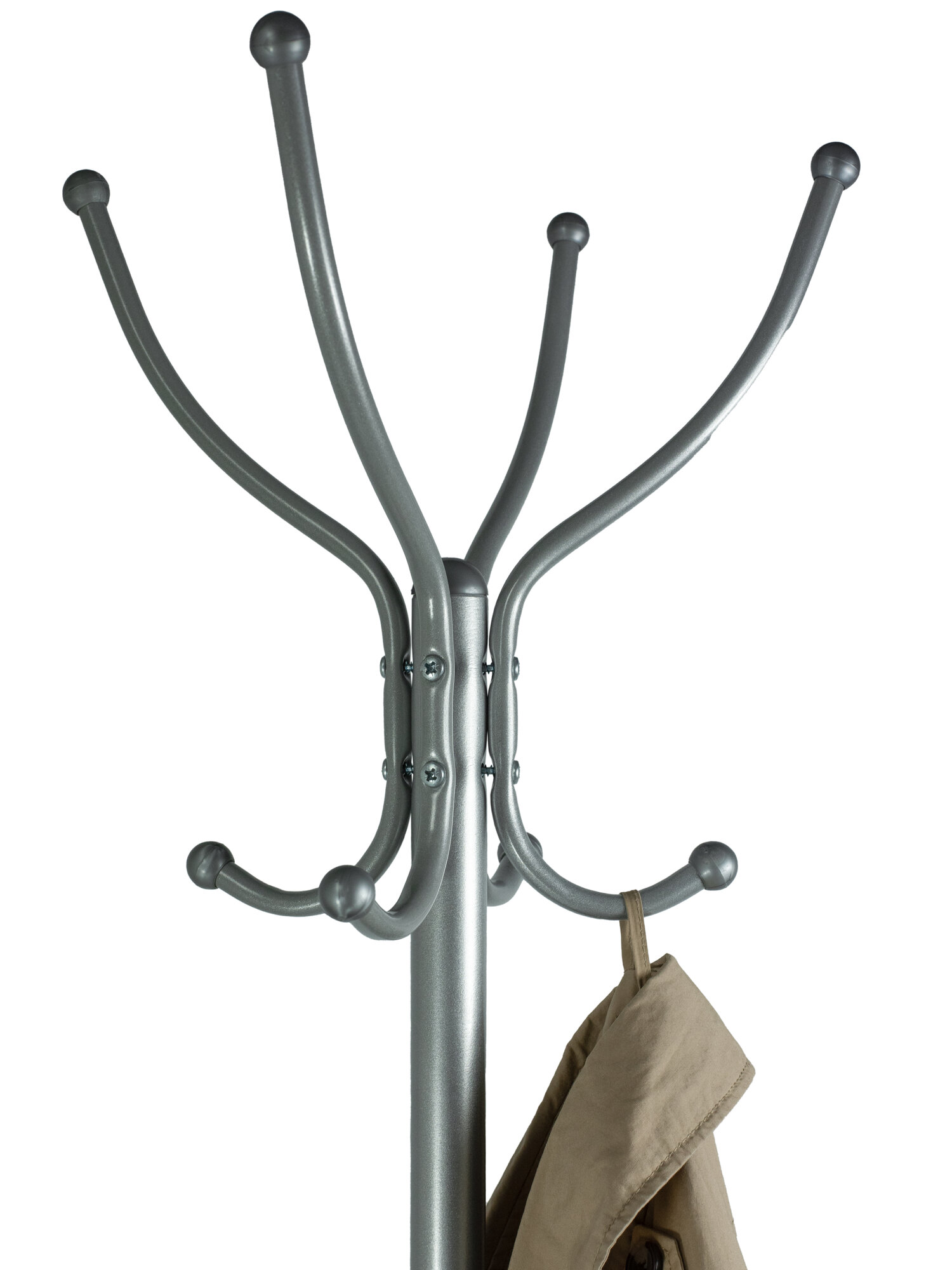 Классическая напольная офисная вешалка с крючками в виде цветочного бутона. 4 крючка для верхней одежды и столько же для головных уборов. Одежду можно вешать и за петли и на вешалках-плечиках. Удобные крючки для сумок или зонтов, опоры обеспечивают устойчивость и не перегружают внешний вид. Вешалка легко собирается без помощника, компактно упакована.