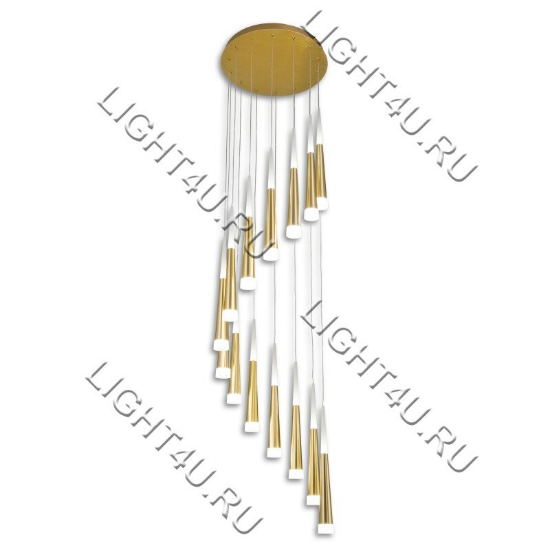 Люстра с 14 LED-светильниками дизайном напоминает всем известные «поющие ветерки»: круглое металлическое основание, длинные и короткие «струны», на концах которых на разной высоте расположены небольшие конусовидные светильники из металла и оптического полимера. Возможно, именно восточное изобретение, служащее для снятия стресса, и стало источником вдохновения для дизайнеров знаменитого датского производителя. Благодаря оригинальной вертикальной конструкции, а также большой площади освещения люстра прекрасно подходит для больших помещений и вполне способна стать не только объектом для медитации, но и главным акцентом в интерьере гостиной или спальни.
