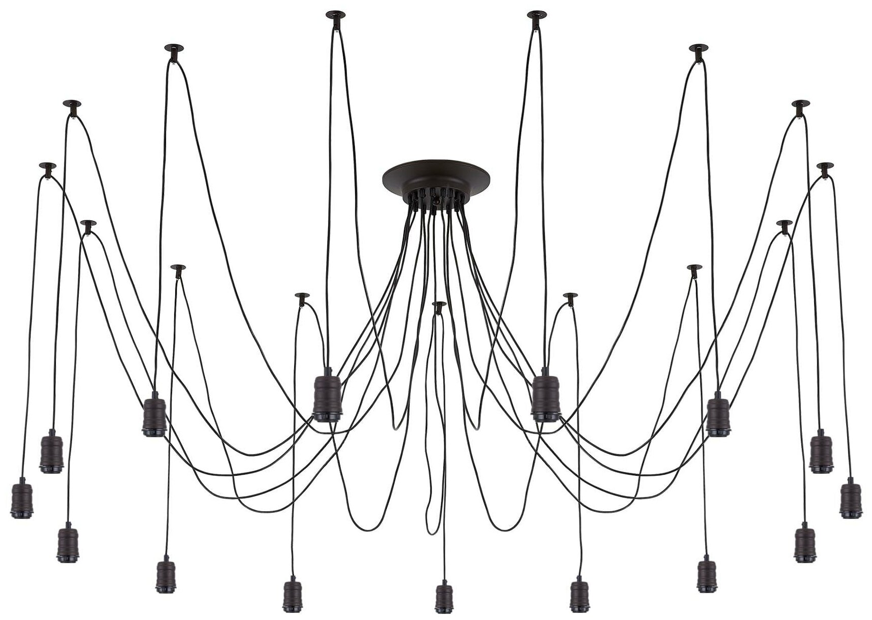 Люстра Эдисона датского бренда Citilux создана в минималистском дизайне и поможет создать гармоничный интерьер в стиле лофт и техно. Единственное украшение модели — металлические напатронники необычной формы. Несмотря на минимум декоративных деталей конструкция со свисающими на тонких паутинках проводов лампочками смотрится эффектно и оригинально. Стандартный патрон Е 27 позволяет использовать в люстре лампы любых типов, но наиболее эффектными станут винтажные лампы накаливания или филаментные источники света.