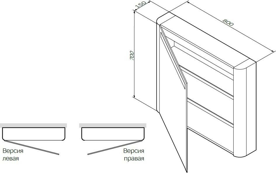 | ВКоробке | Зеркало-шкаф - 1 шт. Комплект подсветки - 1 шт. Комплект доводчиков - 1 шт. Вкладная полка - 2 шт. Инструкция - 1 шт. |