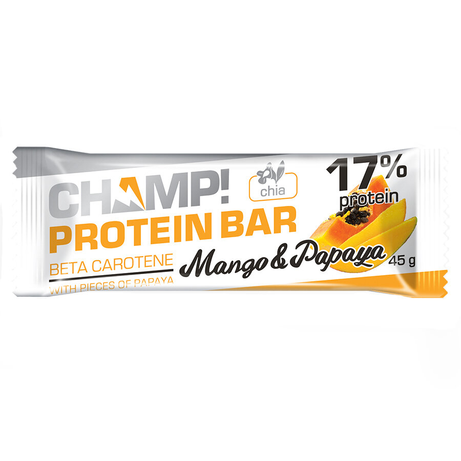Новый батончик СHAMP! в белой глазури с высоким содержанием качественного белка с фруктами и ярким тропическим вкусом - это идеальный перекус для тех, кто поддерживает себя в форме.