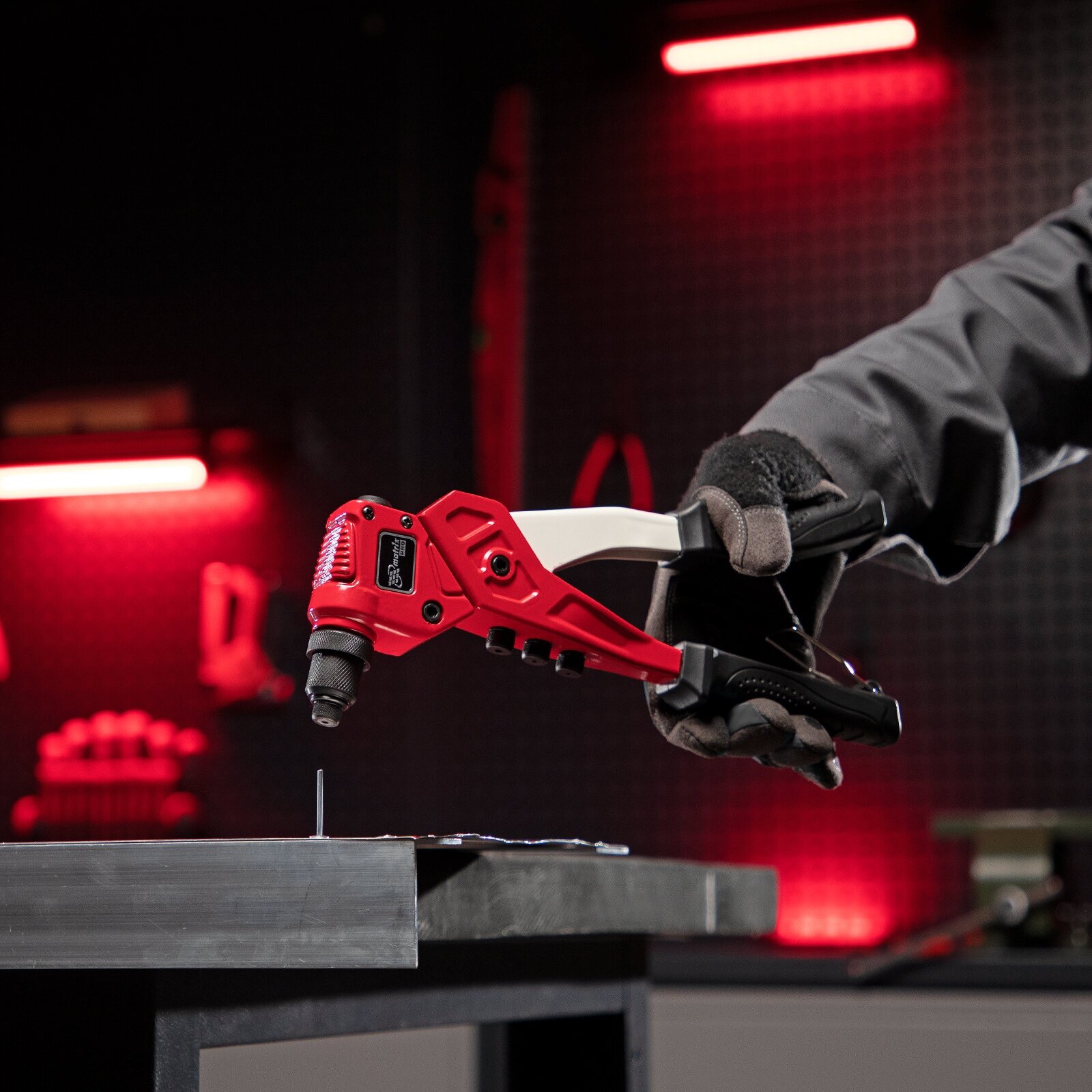 • Поворотная голова заклепочника (0-360 град) удобна при работе в труднодоступных местах.