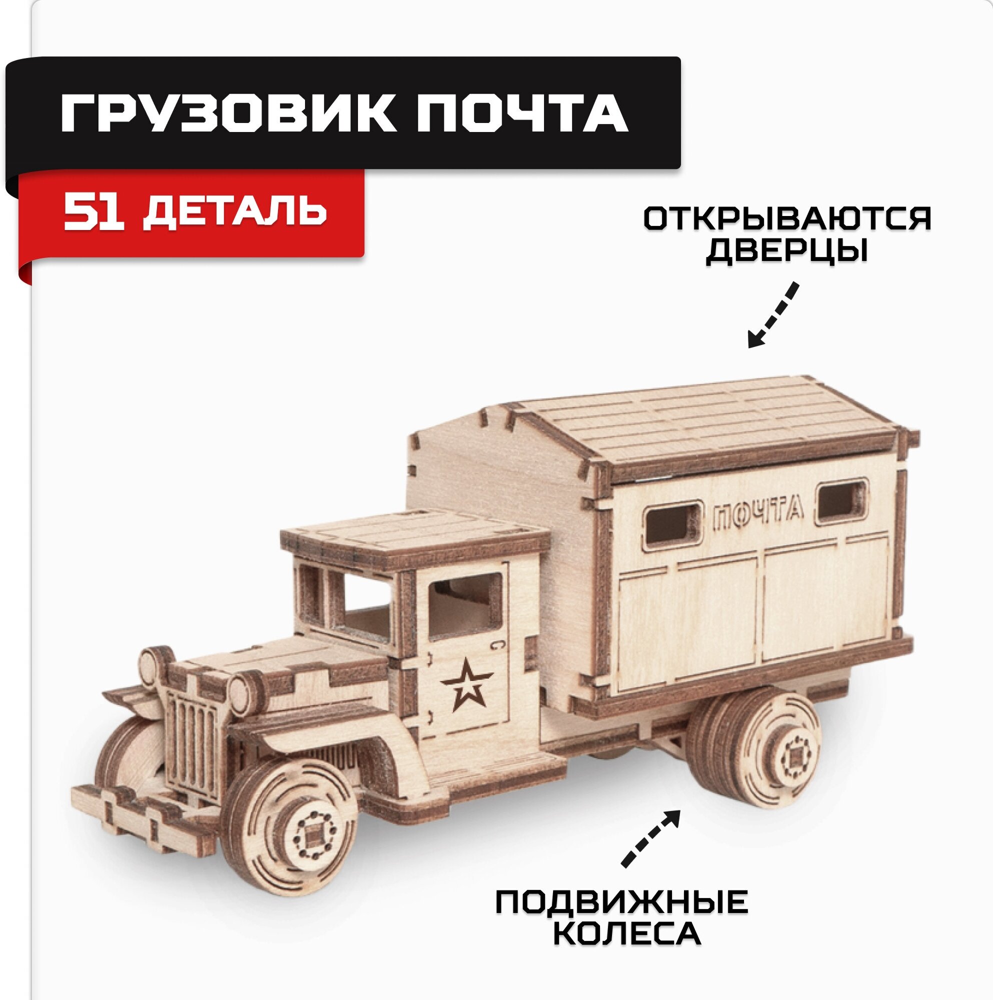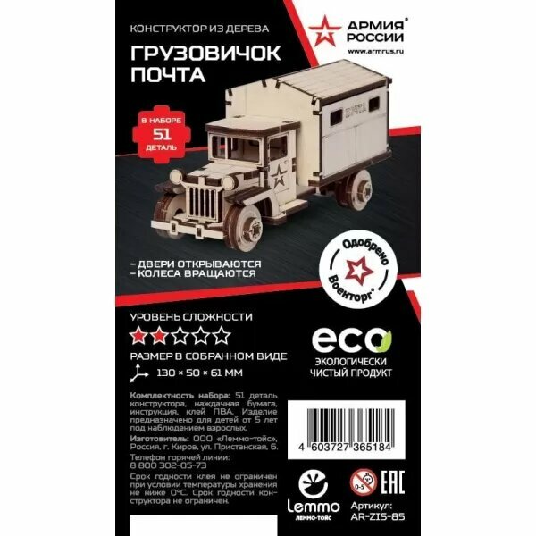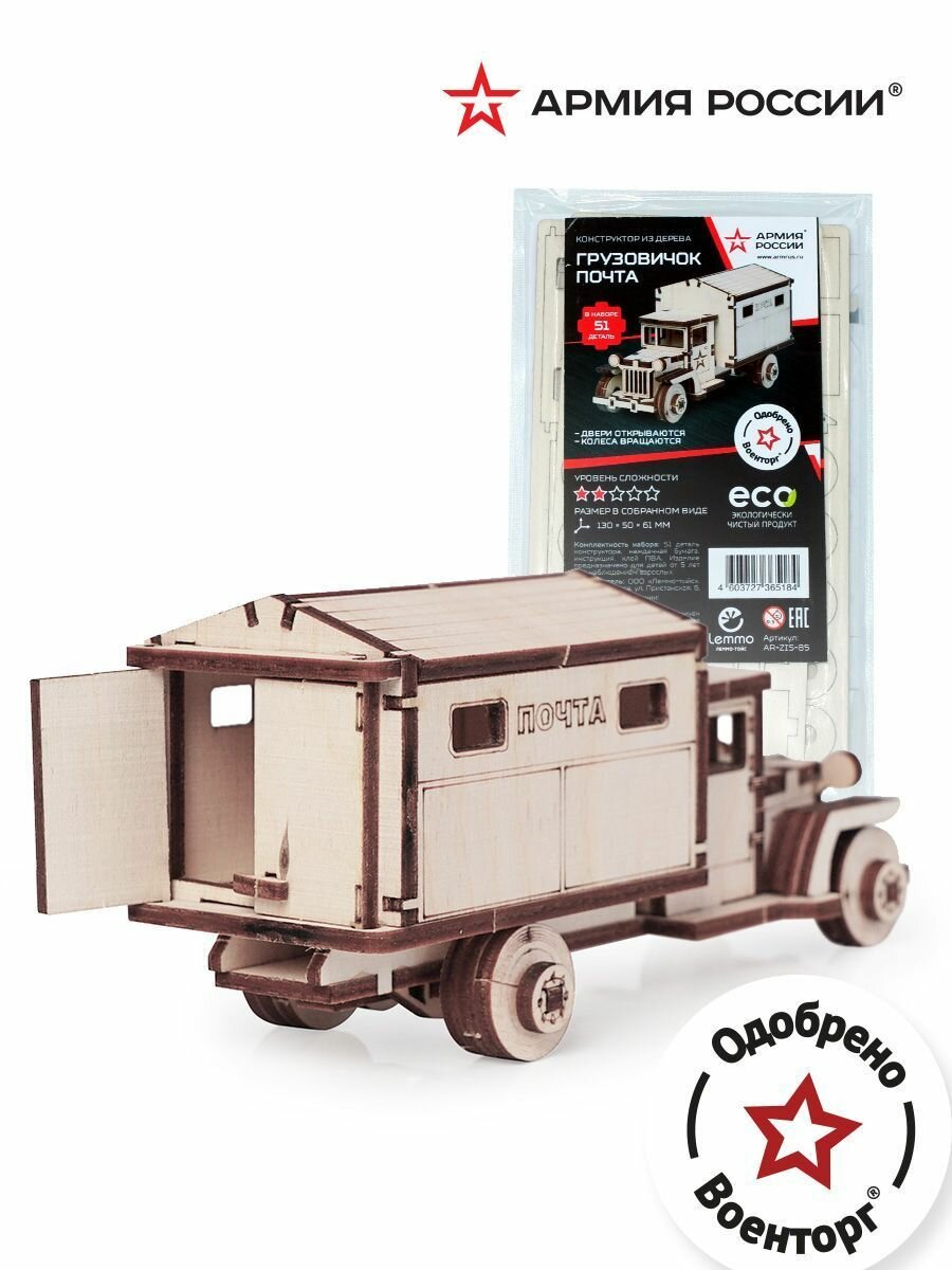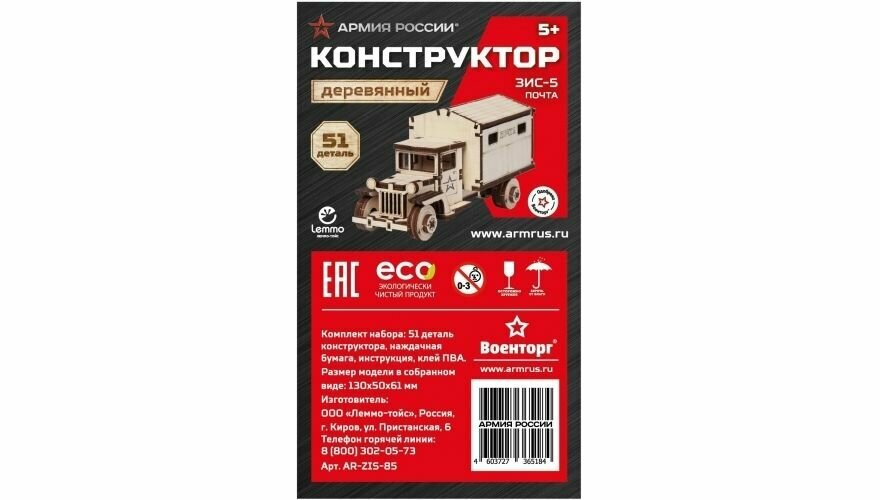 Конструктор из дерева \"Армия России\"" Грузовичок Почта" (AR-ZIS-85)