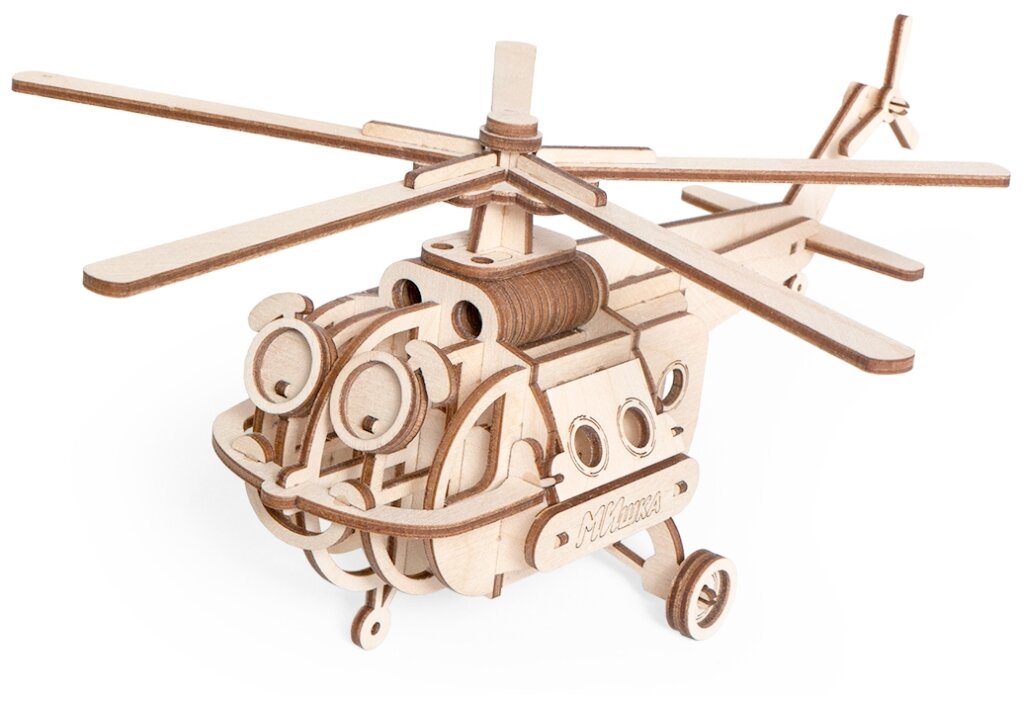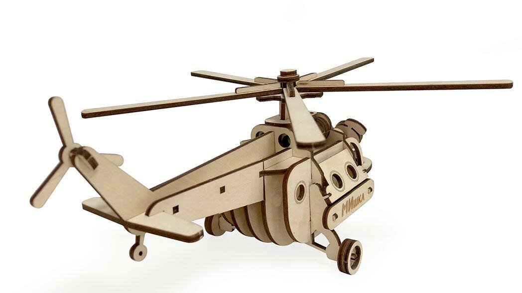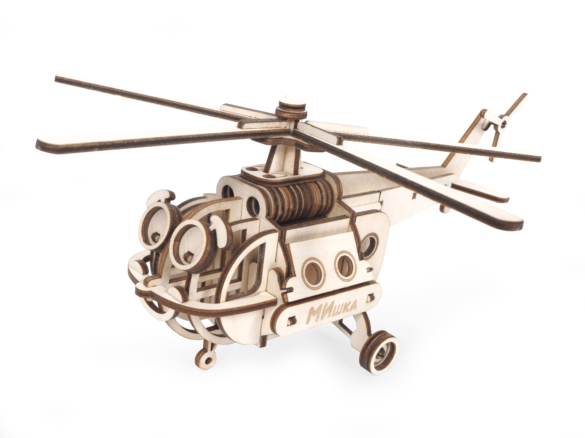 Конструктор 3D деревянный подвижный Lemmo Вертолет \"МИшка\""" Вертолет МИшка (56 деталей)