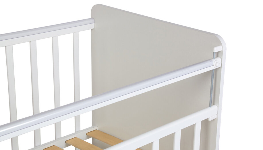 На боковых стенках кровати есть силиконовые накладки для защиты кроватки и зубок малыша.