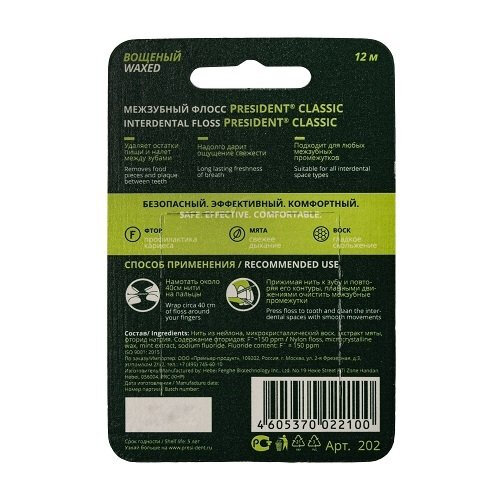 Президент classic флосс вощеный мята фтор 12м (202) Hebei Fenghe Biotechnology INC., Ltd (1303428)