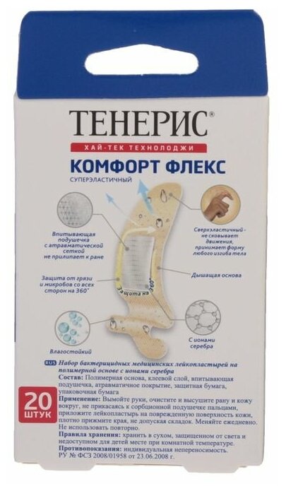 Лейкопластырь бактерицидный суперэластичный на полимерной основе Teneris Comfort flex 76х19 №20 PharmLine Limited/Everaid CO (1417742)