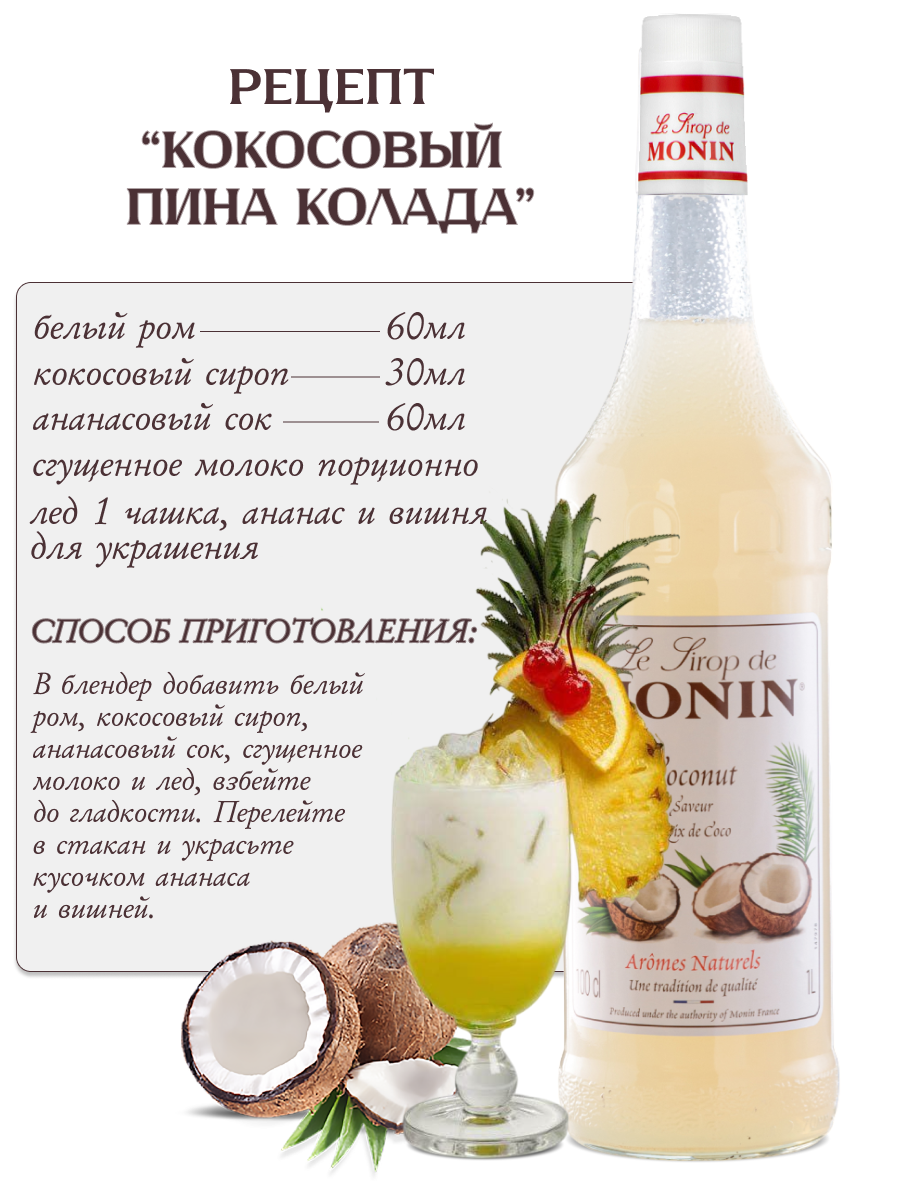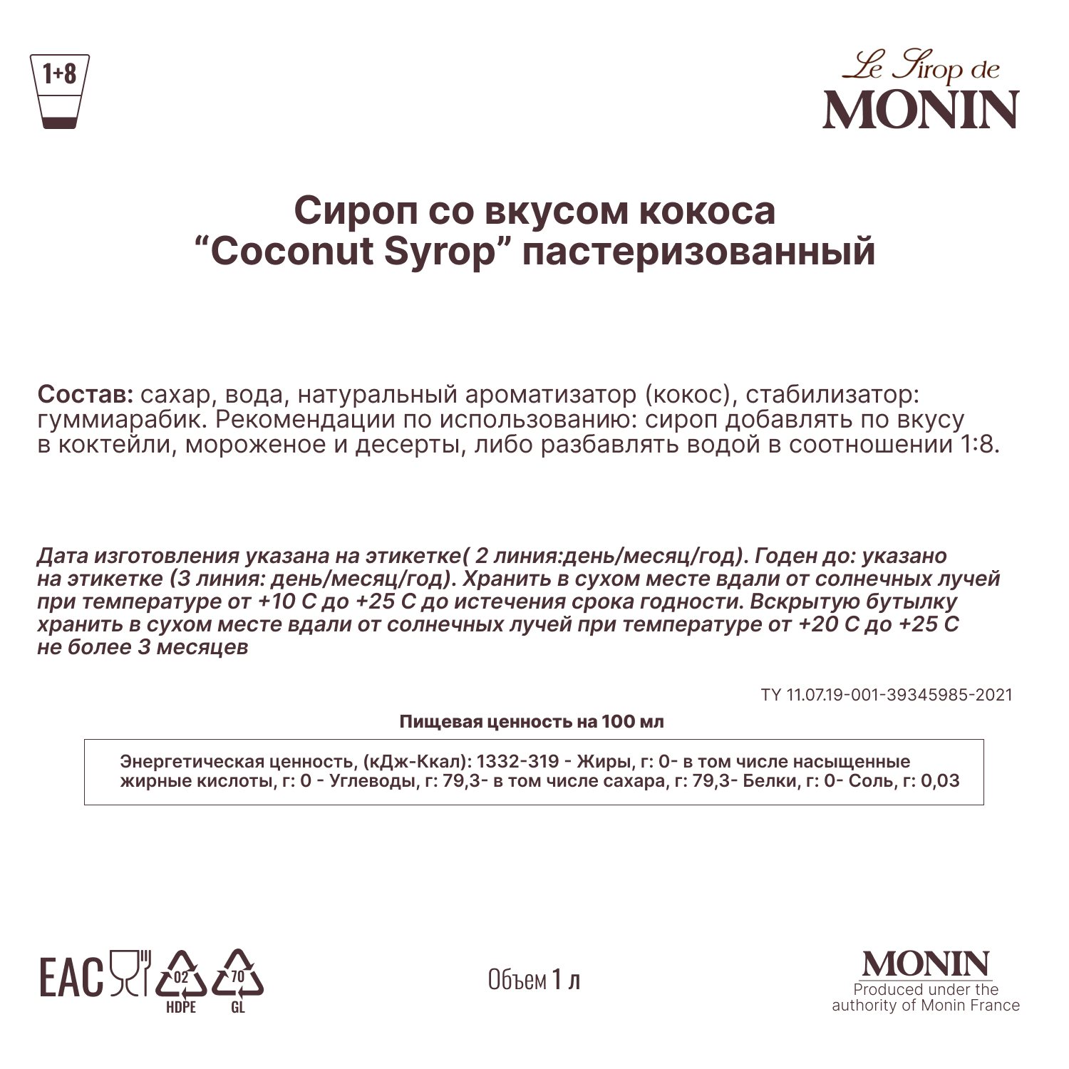 Сироп Monin Coconut Syrup со вкусом и ароматом кокоса 250мл
