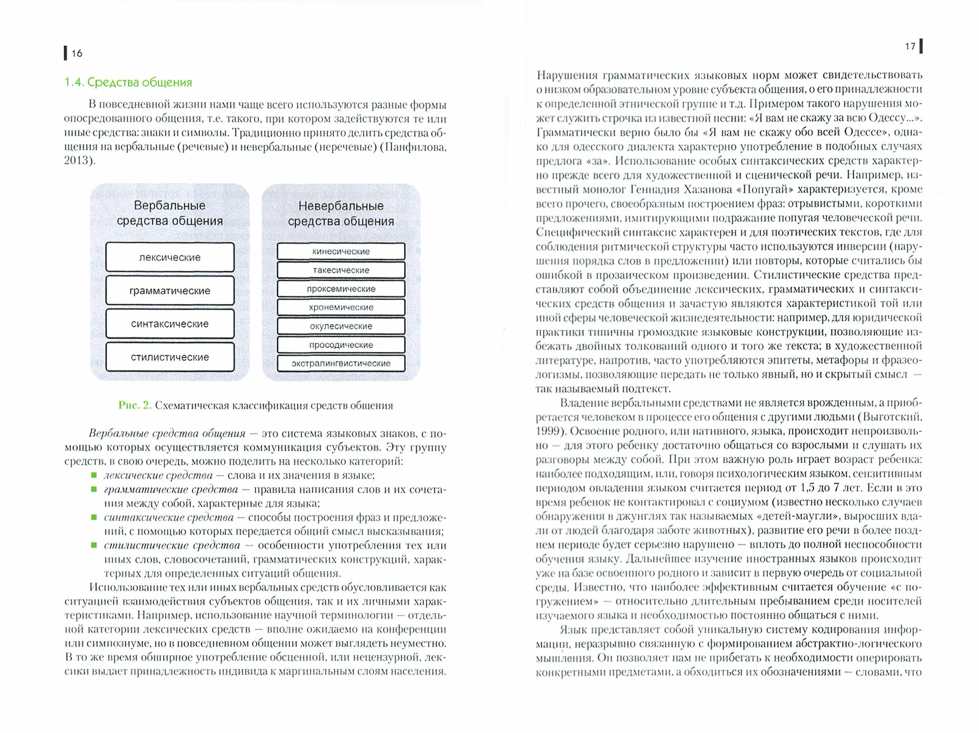 Изложены представления современной социальной психологии о феномене общения и его роли в жизни человека. Материал книги сгруппирован в четыре раздела, каждый из которых сопровождается вопросами и тестами для самопроверки и упражнениями для групповой работы в аудитории. Первый раздел посвящен описанию важнейших особенностей процесса общения и его субъектов; второй — рассмотрению человека как субъекта деловой и межличностной коммуникации, третий — анализу специфики общения в деловом взаимодействии; четвертый — психологической характеристике межличностных коммуникаций. Практические примеры в тексте иллюстрируют возможности применения изложенных материалов в повседневной жизни и профессиональной деятельности. Соответствует ФГОС ВО последнего поколения. Для студентов бакалавриата, обучающихся по всем направлениям.