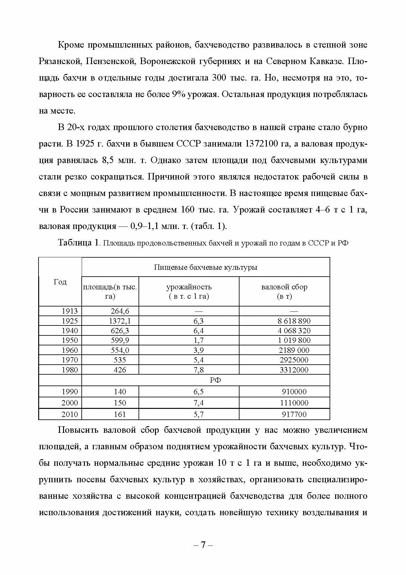 Рассматриваются исторические аспекты развития бахчеводства в России, отличительные биологические и морфологические особенности бахчевых культур, технологии возделывания бахчевых культур в сухом и орошаемом земледелии, приведены краткие характеристики районированных сортов и технологические схемы возделывания бахчевых культур.