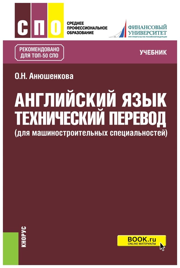 Английский язык. Технический перевод (для машиностроительных специальностей). Учебник (Анюшенкова Ольга Николаевна); Кнорус, 2022
