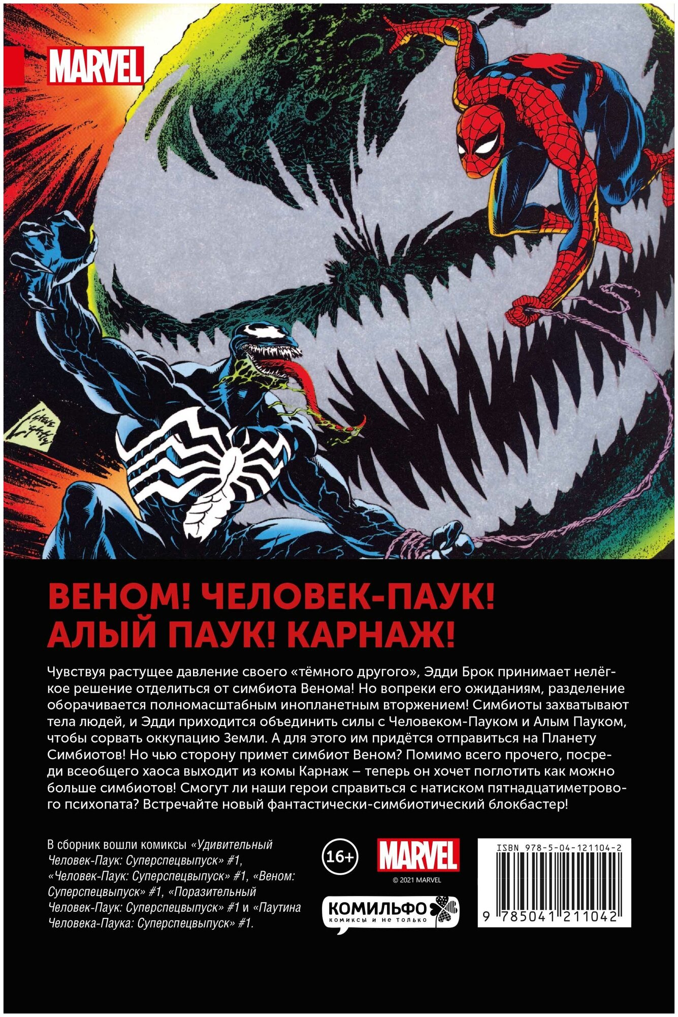 Чувствуя растущее давление своего «тёмного другого», Эдди Брок принимает нелёгкое решение отделиться от симбиота Венома! Но вопреки его ожиданиям, разделение оборачивается полномасштабным инопланетным вторжением! Симбиоты захватывают тела людей, и Эдди приходится объединить силы с Человеком-Пауком и Алым Пауком, чтобы сорвать оккупацию Земли. А для этого им придётся отправиться на Планету Симбиотов! Но чью сторону примет симбиот Веном? Помимо всего прочего, посреди всеобщего хаоса выходит из комы Карнаж – теперь он хочет поглотить как можно больше симбиотов! Смогут ли наши герои справиться с натиском пятнадцатиметрового психопата? Встречайте новый фантастически-симбиотический блокбастер!