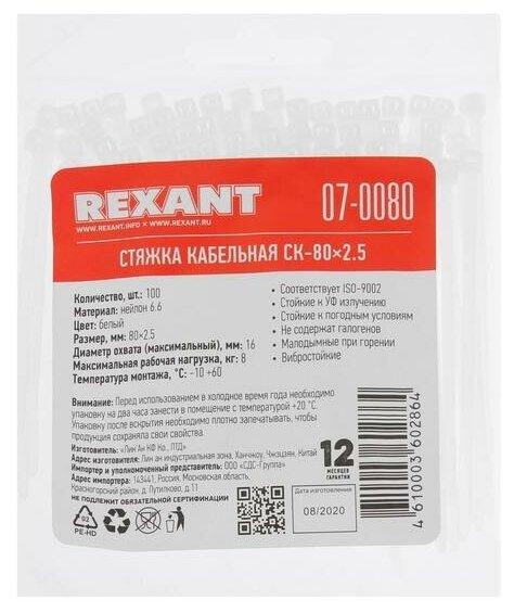 Стяжка для кабеля Rexant 07-0080