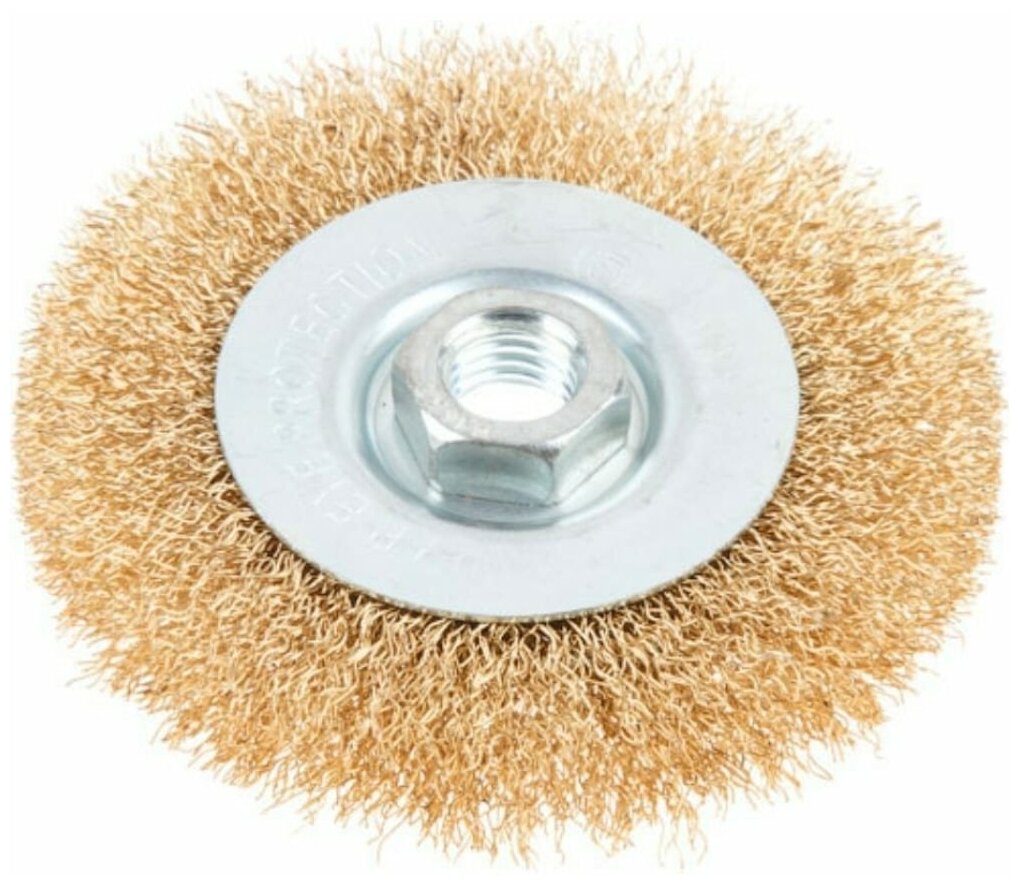 Щетка дисковая для УШМ 100 мм, M14, гофрированная проволока Gepard предназначена для очистки поверхностей от ржавчины, грязи, удаления лакокрасочных покрытий, получения заданной шероховатости. Подходит для УШМ. Форма: плоская. Диаметр проволоки 0.3 мм. Тип проволоки стальная латунированная, волнистая, гофрированная. Внимание, изображение товара может отличаться от реального! Верные параметры указаны в технических характеристиках товара.