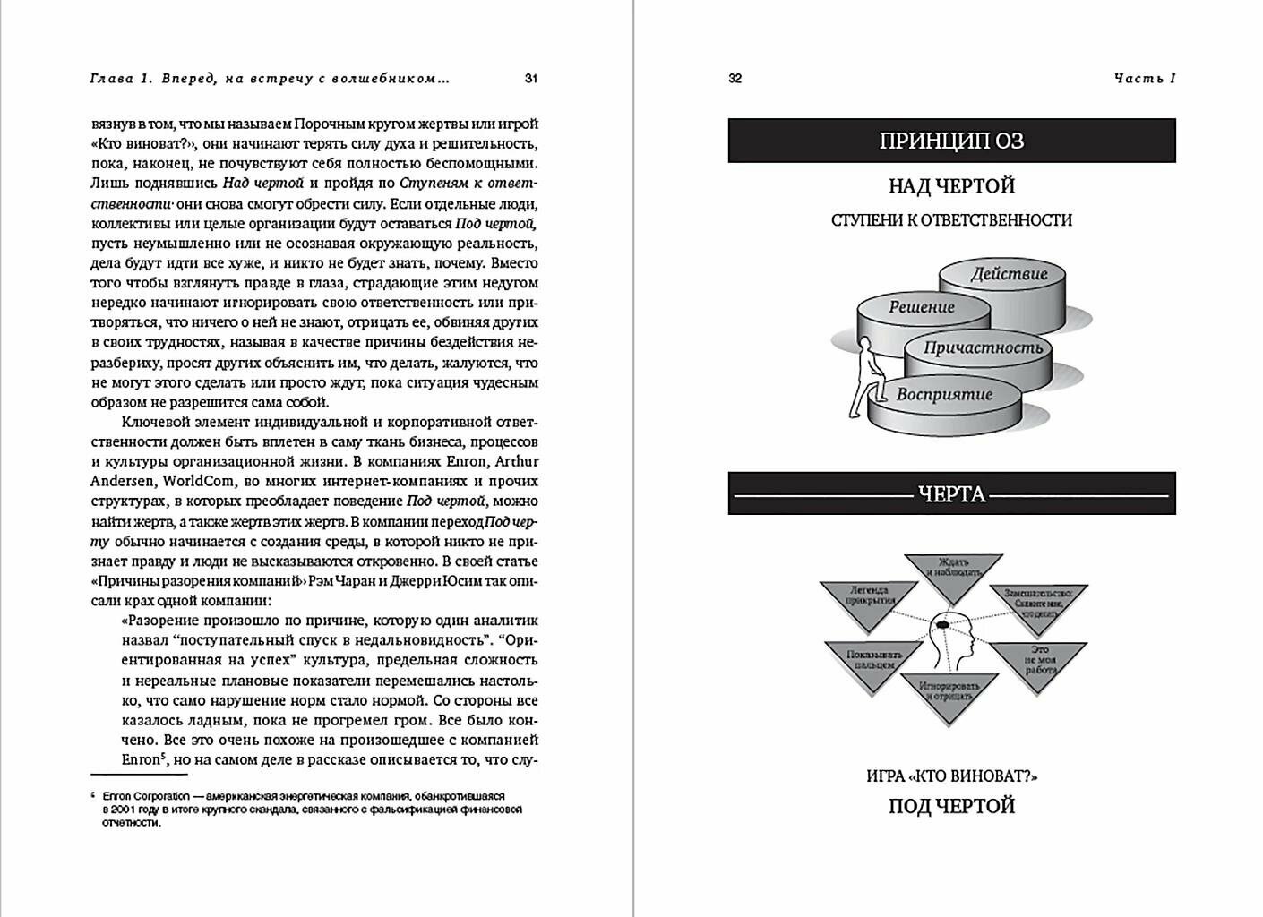 «Принцип Оз» основан на результатах более чем 20-летнего исследования успешных организаций и рассказывает, каким образом отдельные люди и целые организации, вооружившись ответственностью, могут добиваться желаемых результатов даже в самых трудных ситуациях. Читатель узнает, как важна персональная ответственность за результат, и научится создавать организационную культуру, ориентированную на развитие и поощрение ответственности, необходимой для укрепления организации и достижения поставленных целей.