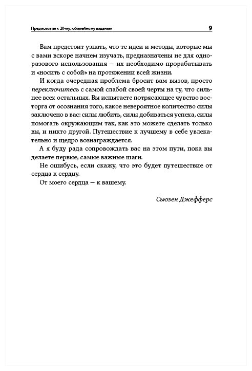 В этой книге Сьюзен Джефферс дает техники и инструменты, которые помогли бесчисленному множеству людей совладать со своими страхами и идти по жизни уверенно.