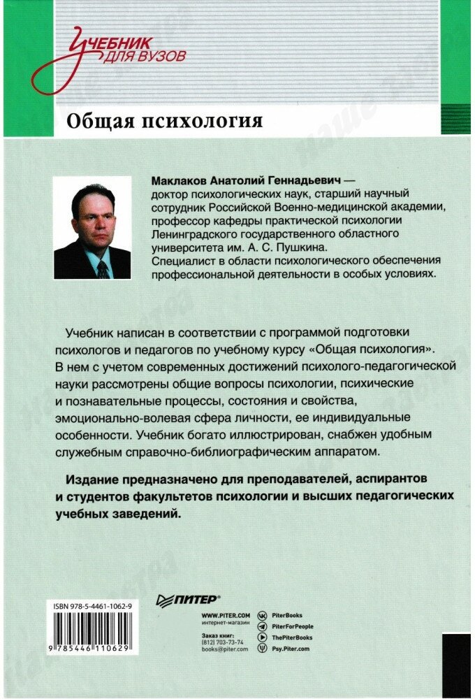 Общая психология: Учебник для вузов (Анатолий Геннадьевич Маклаков); Питер, 2024