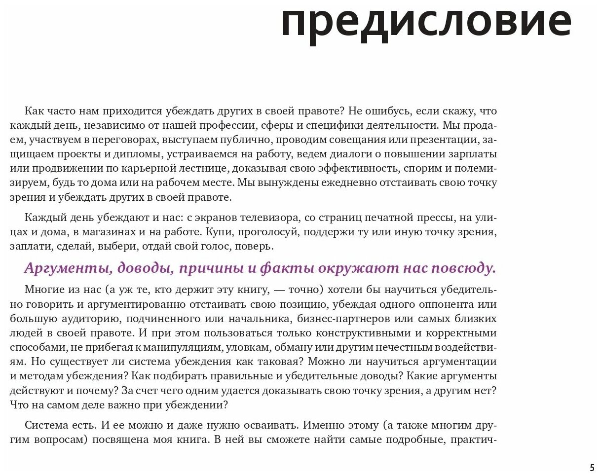 Каждый день независимо от нашей сферы деятельности нам приходится убеждать других в своей правоте. Мы участвуем в переговорах, выступаем публично, проводим совещания или презентации, защищаем проекты и дипломы, устраиваемся на работу, ведем диалоги о повышении зарплаты или продвижении по карьерной лестнице, спорим и полемизируем и дома, и на рабочем месте.