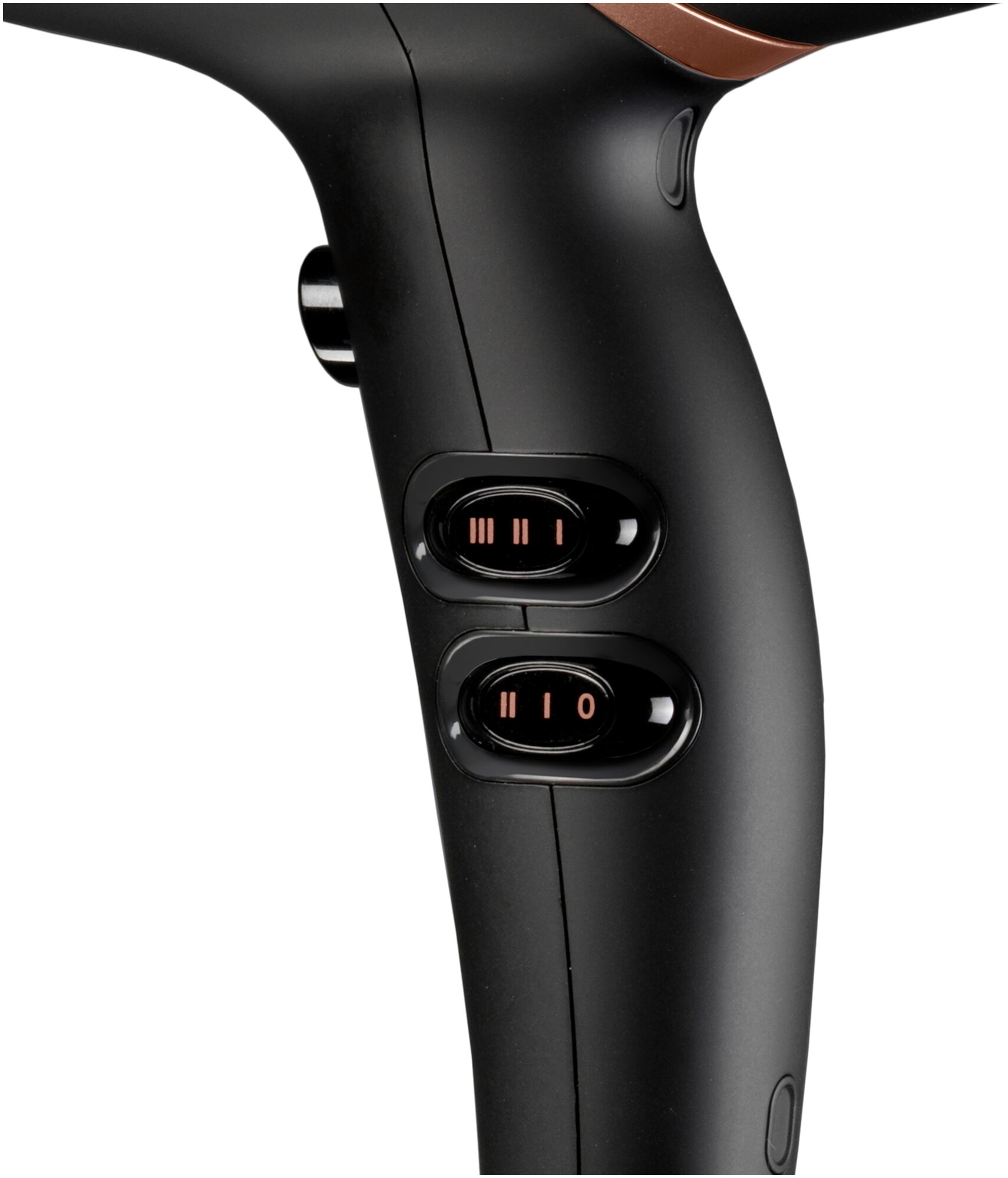 Фен BaByliss - мощный и функциональный инструмент для ухода за волосами.Мощность 2200 Вт и производительный мотор обеспечивают высокую скорость воздушного потока, что позволяет быстро и эффективно сушить волосы. Фен оснащен 3 температурными режимами и 2 скоростями, а также функцией холодного обдува для закрепления результата.Рабочие элементы фена покрыты нано-кварц-керамикой, что обеспечивает их долговечность и защиту от перегрева. Функция ионизации придает волосам здоровый блеск и делает их более послушными.Фен оснащен насадкой в виде тонкого концентратора для точной укладки и съемным задним фильтром для удобства очистки. Шнур питания длиной 2,5 м обеспечивает свободу движений во время использования.Фен BaByliss имеет стильный черный цвет с бронзовыми и оранжевыми элементами, что делает его не только функциональным, но и стильным аксессуаром для ухода за волосами.В комплект поставки входят: фен, насадка-концентратор, насадка-диффузор, инструкция и гарантийный талон.