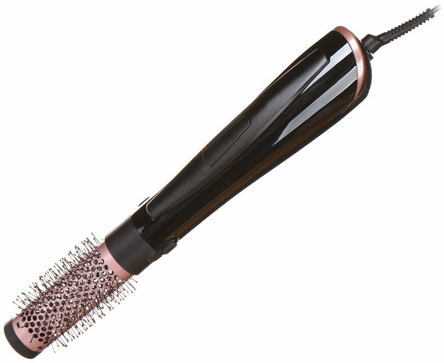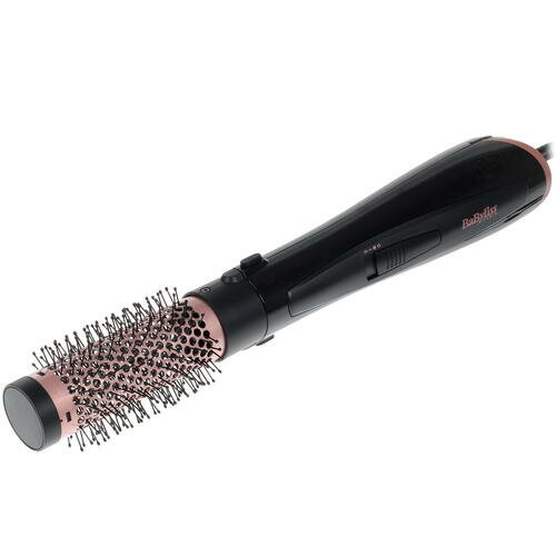 Фен-щетка BaByliss − это эффективный инструмент. позволяющий быстро сделать эффектную укладку. Модель представлена в компактном корпусе черного цвета, содержащем розовые вставки, с эргономичной ручкой, за которую очень удобно прибор удерживать в одной руке. Это воздуходувная щетка, обладающая мощностью 1000 Вт, которая позволяет осуществлять легкую и шелковистую формовку волос. BaByliss предусматривает четыре насадки в комплекте, каждая из которых преследует свою цель. Кисть диаметром 38 мм способствует структурированной чистке, Щетка, содержащая мягкую щетину 20 мм, позволяет достичь прикорневого объема, для шелковистого результата используется сглаживающая головка, а благодаря концентратору перед укладкой вы сможете удалить с волос лишнюю влагу, которая может помешать укладке. Мягкость и блеск волос достигается благодаря воздействию отрицательных ионов, убирающих статическое электричество с волос. Для подключения прибора используется шнур длиной 2.2 м.